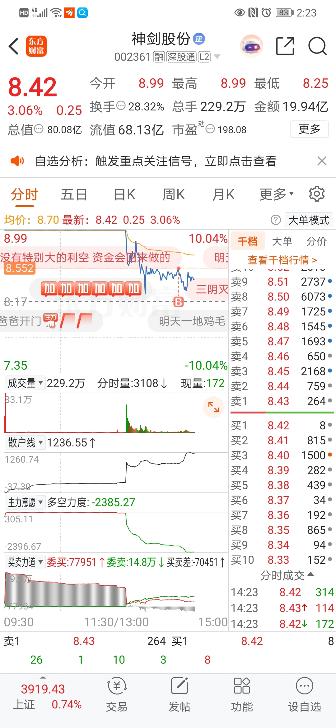 $神剑股份(SZ002361)$ 又上当了,明天大面一碗我认了