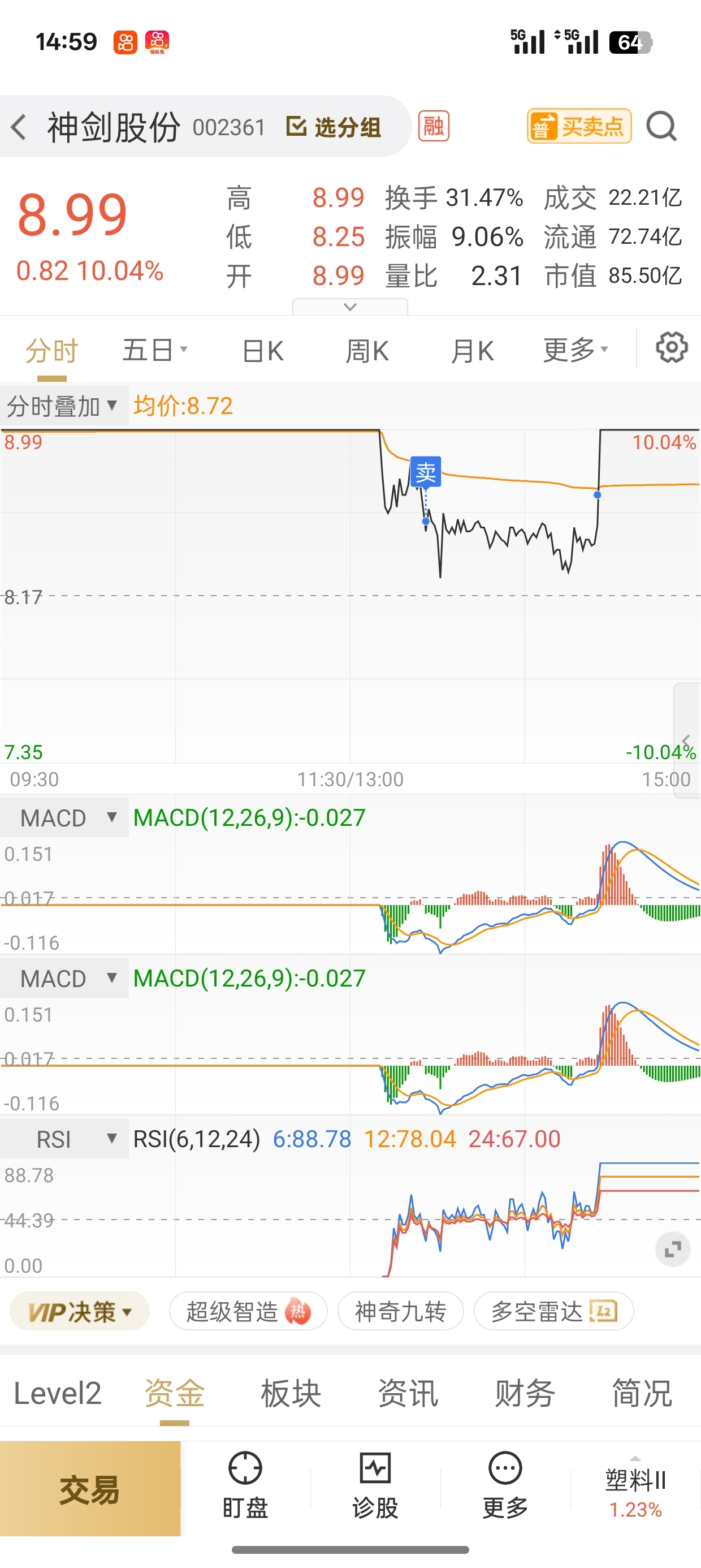 $神剑股份(SZ002361)$ 吗的今天被踢我下岗
