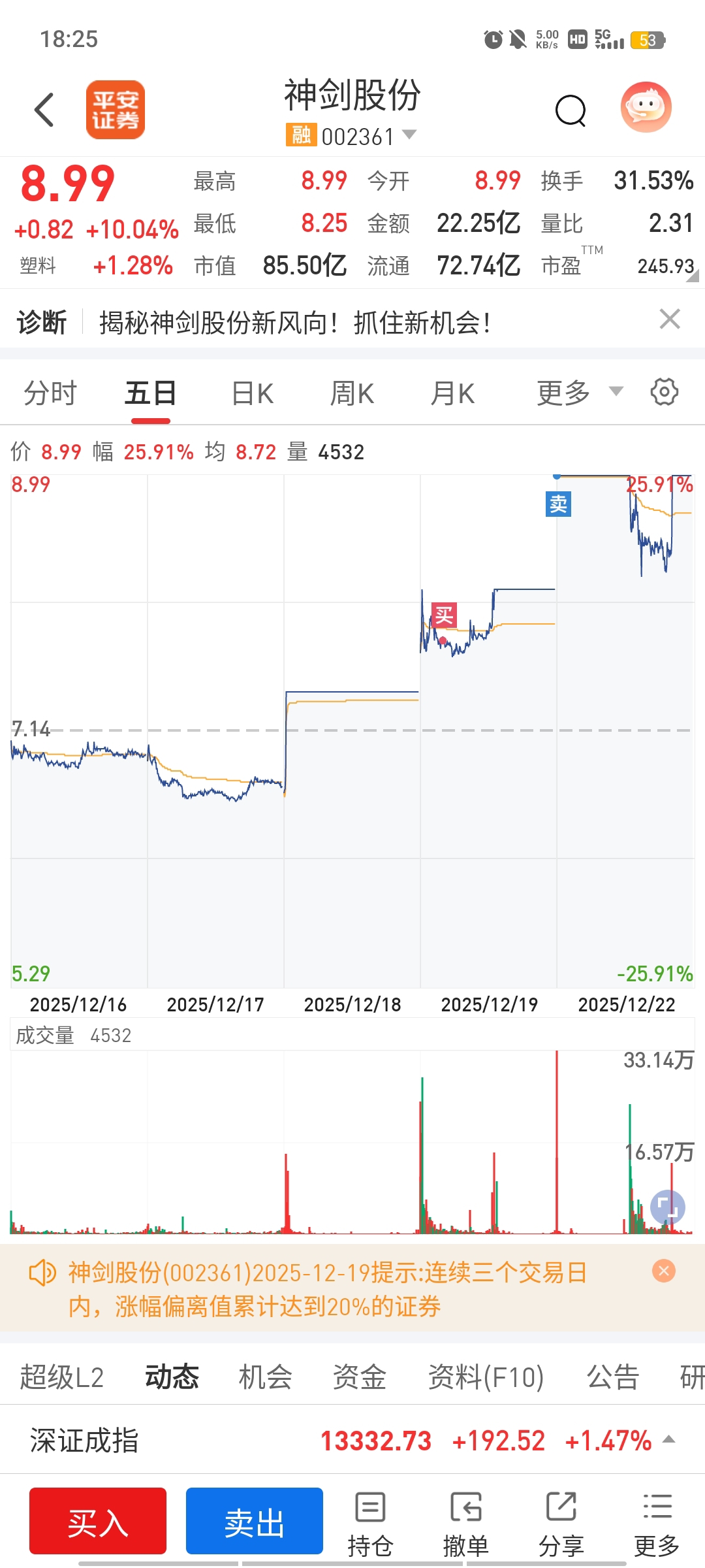 $神剑股份(SZ002361)$ 我没上车