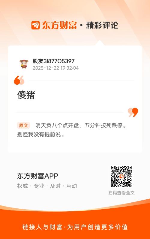 傻猪 我在《明天负八个点开盘,五分钟按死跌停。别怪我没有提前说。》的评论获得了大家的关注。