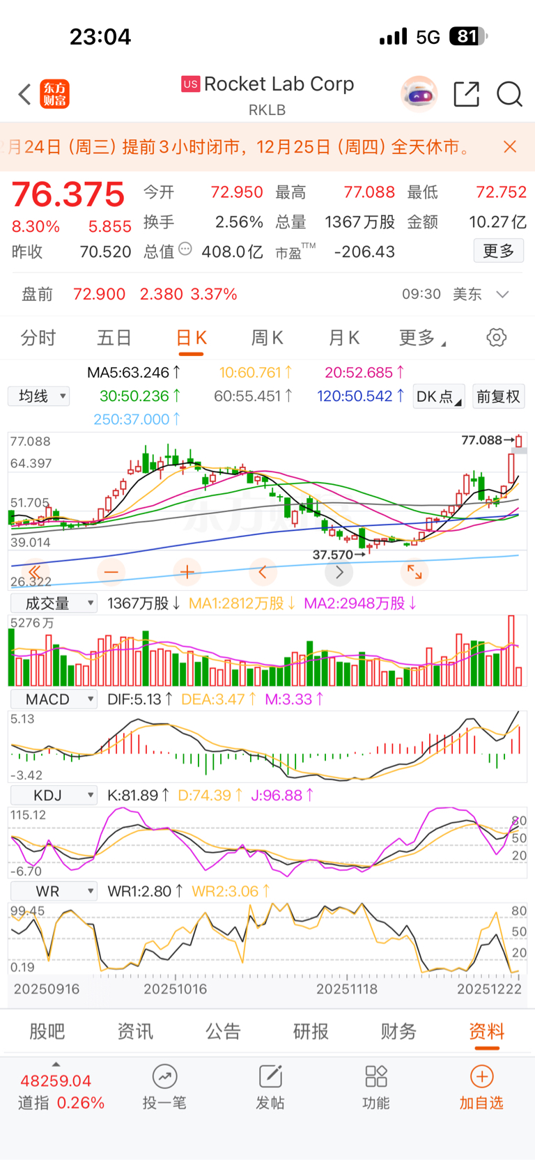 美股商业航天再次大涨!明天神剑股份继续涨停!