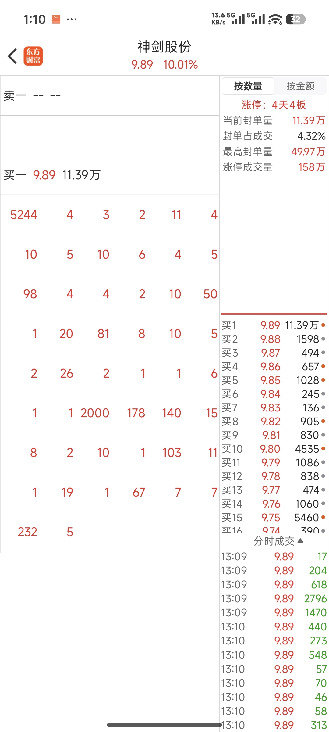 $神剑股份(SZ002361)$ 看样子危险了,没有大单封,全是小单封的
