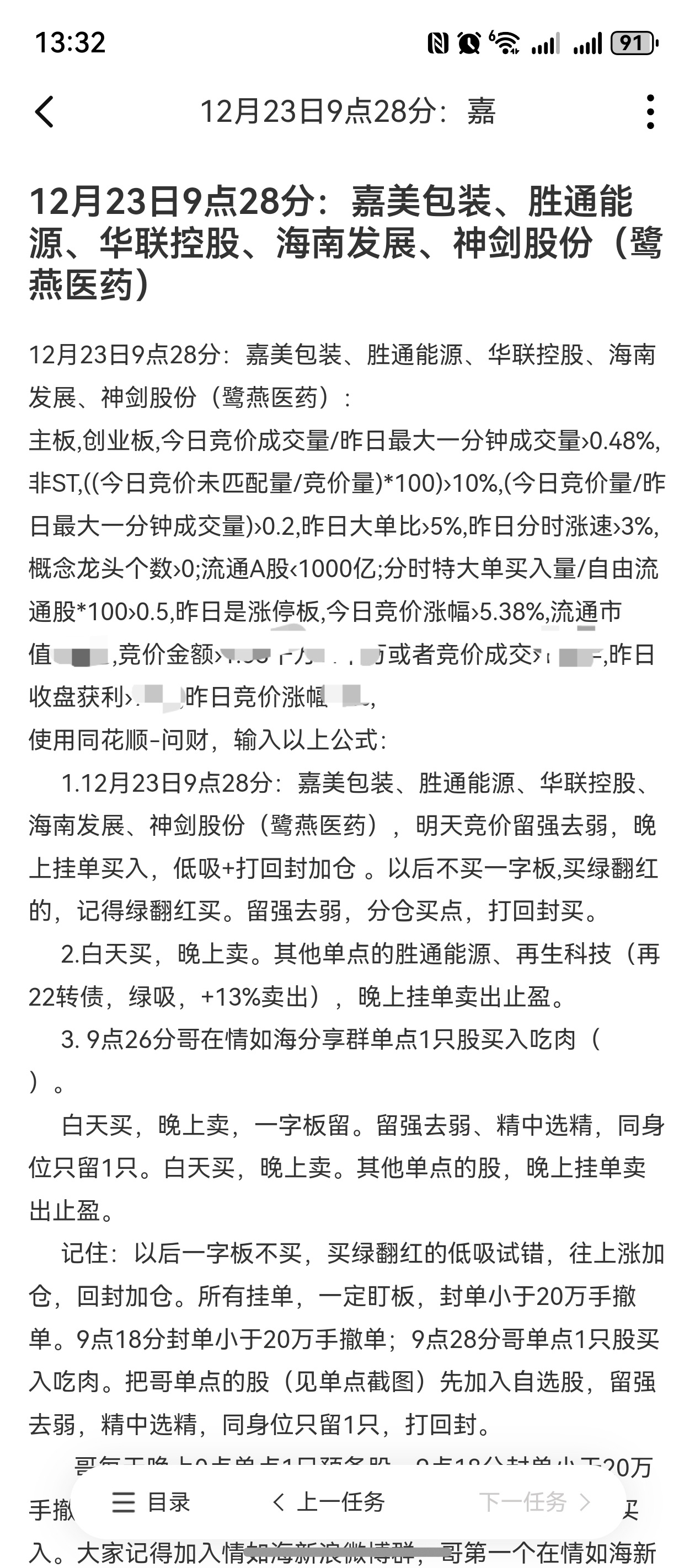 $神剑股份(SZ002361)$ 12月23日9点28分:1.单点3天神剑股份,盯板吃肉或T。 2.单点2天嘉美包装,华联控股,(胜通能源)恭喜吃肉。3.单点2天海峡发展(鹭燕医药)盯板卖出止盈。收工。