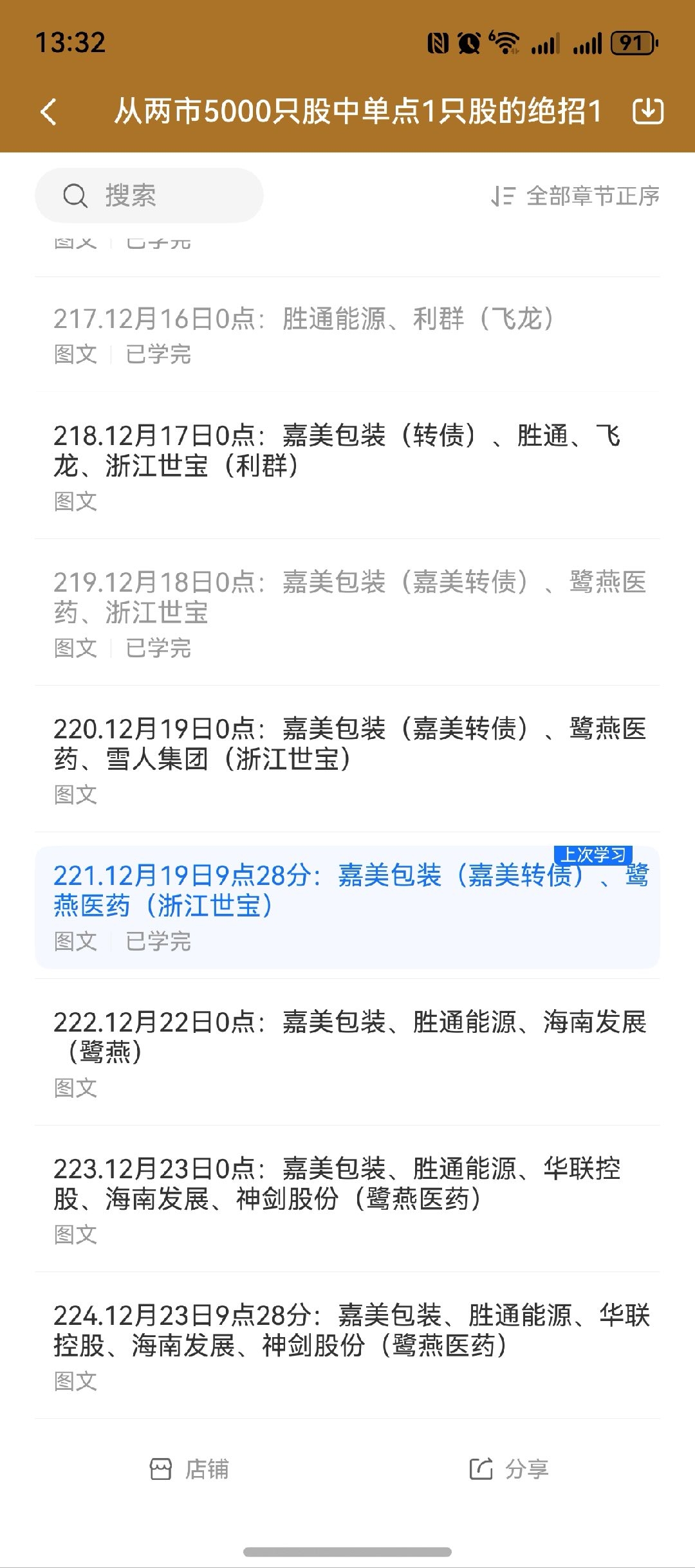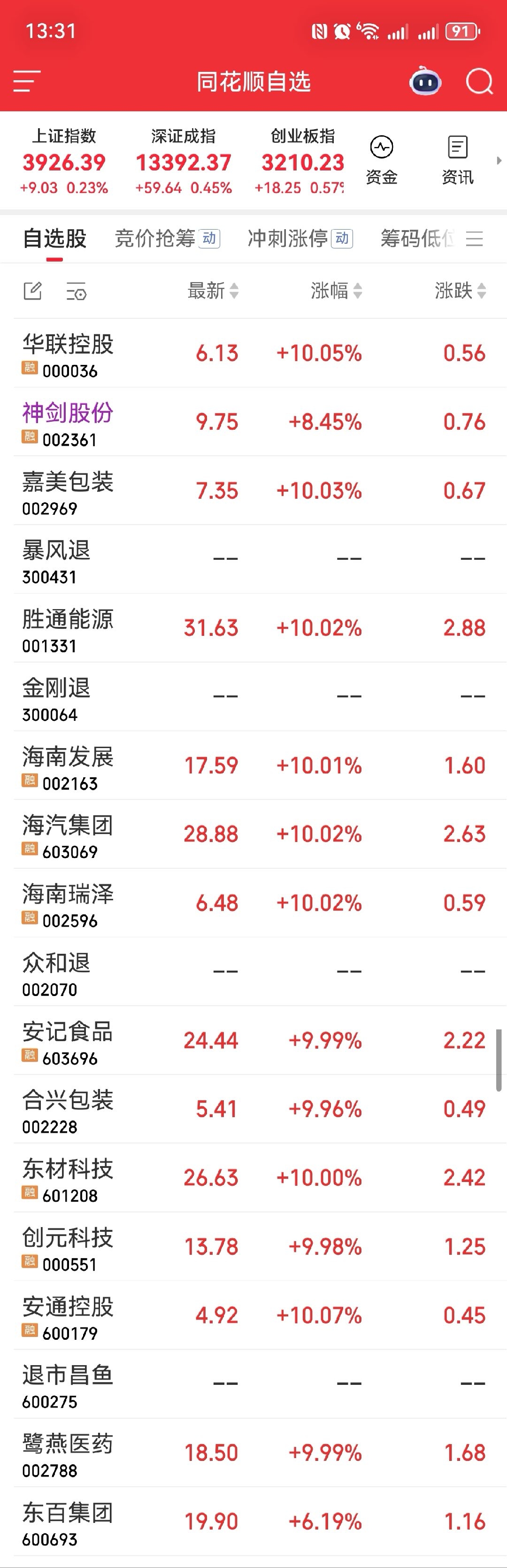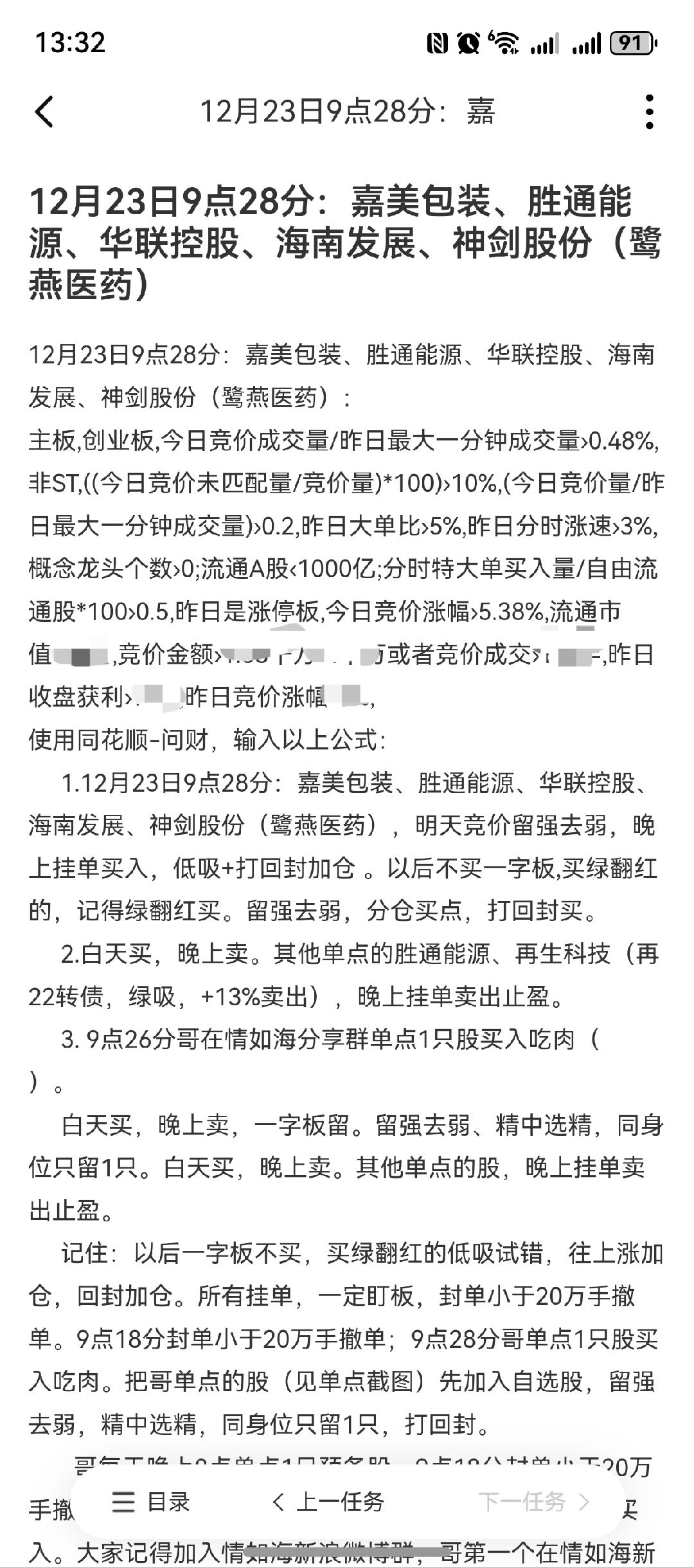 $神剑股份(SZ002361)$ 12月23日9点28分:1.单点3天神剑股份,盯板吃肉或T。 2.单点2天嘉美包装,华联控股,(胜通能源)恭喜吃肉。3.单点2天海峡发展(鹭燕医药)盯板卖出止盈。收工。