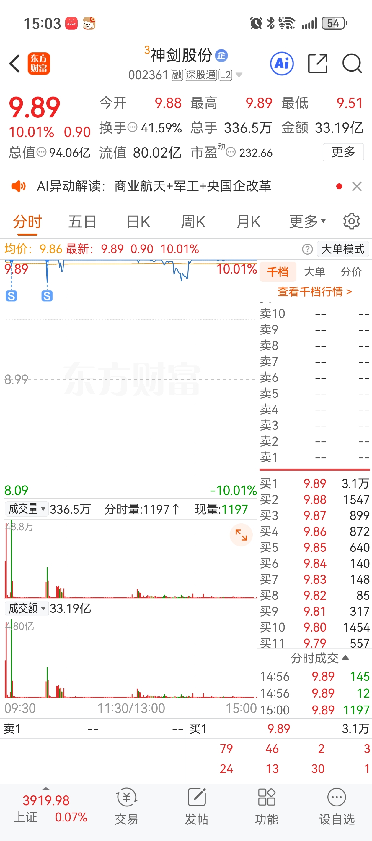 果断卖出。航天商业明天回调。