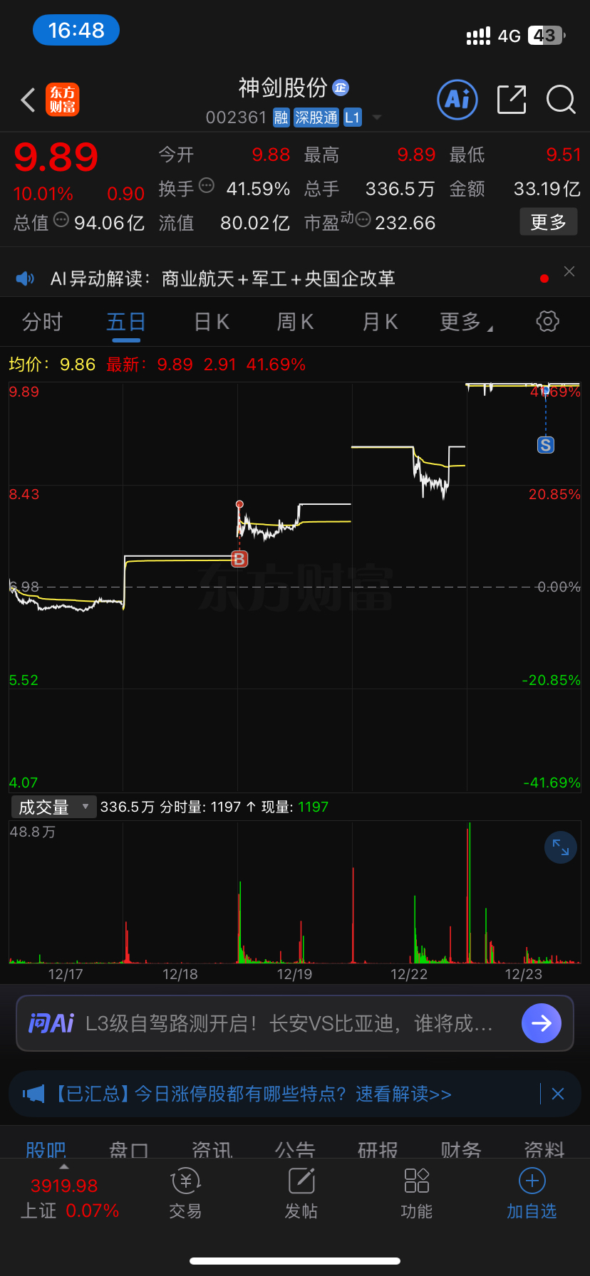 $神剑股份(SZ002361)$ 好难受 卖飞了只吃了两个板