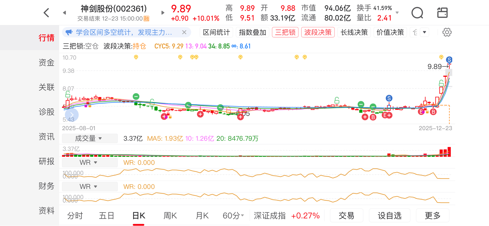 $神剑股份(SZ002361)$ 四个板跑了,留下发财!