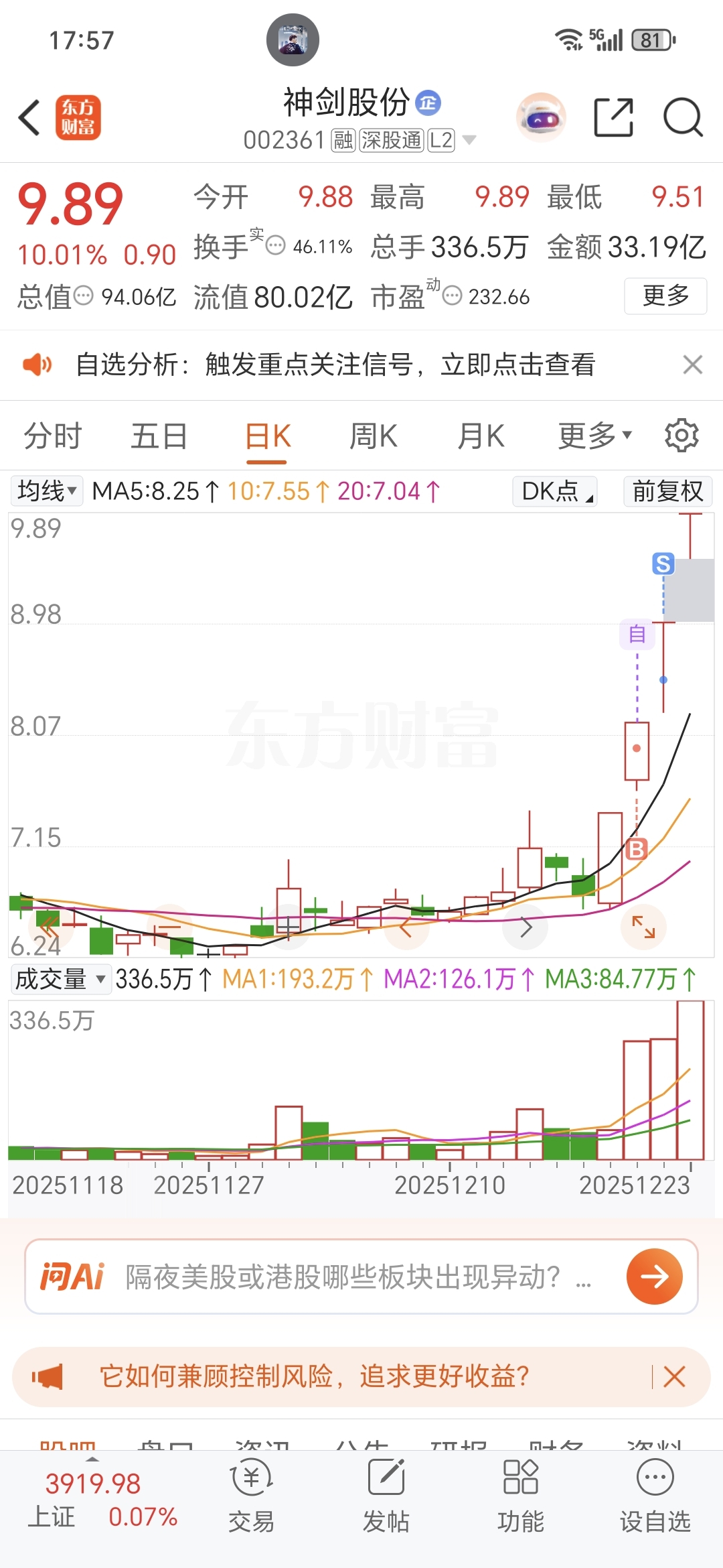 $神剑股份(SZ002361)$ 意难平,不过是我踏往顶峰的垫脚石