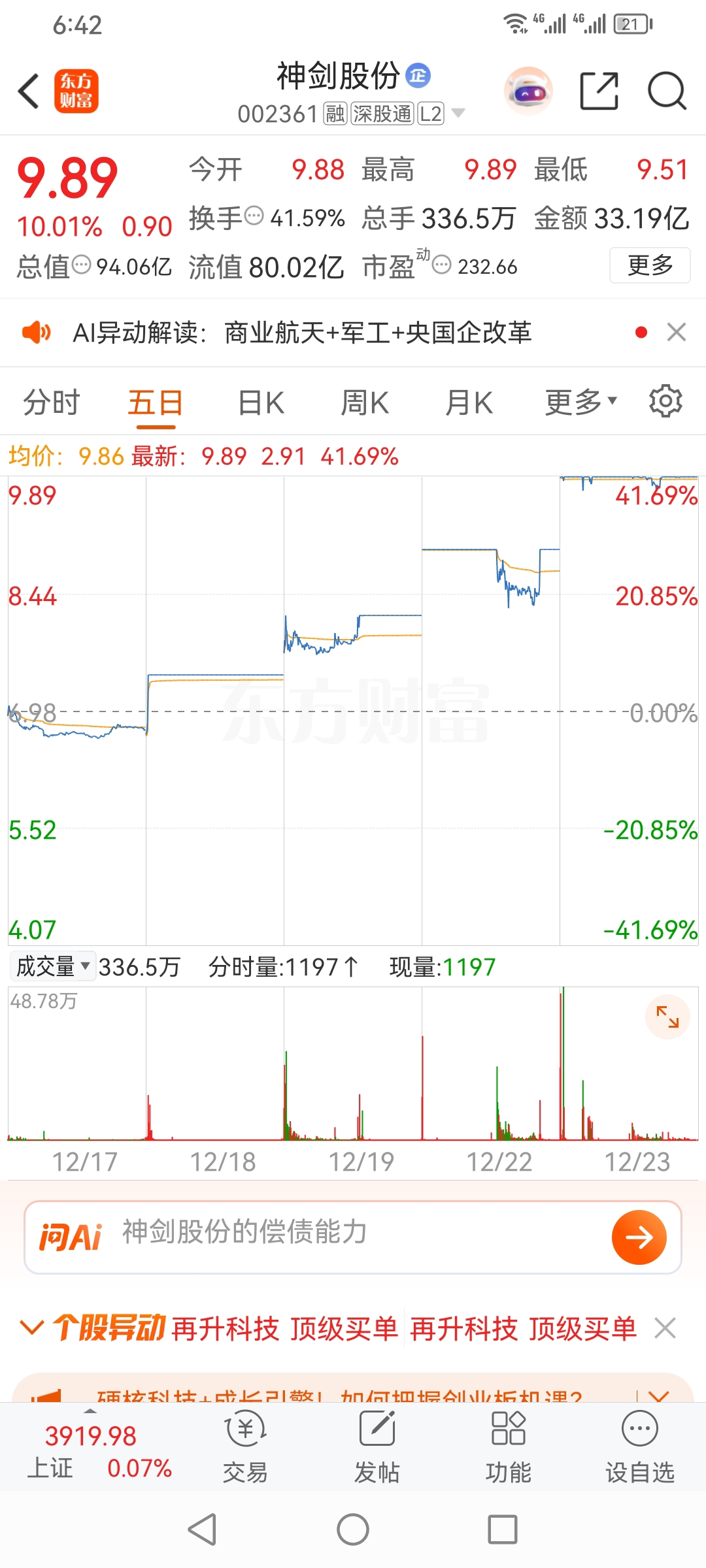 军哥神剑股份,大涨