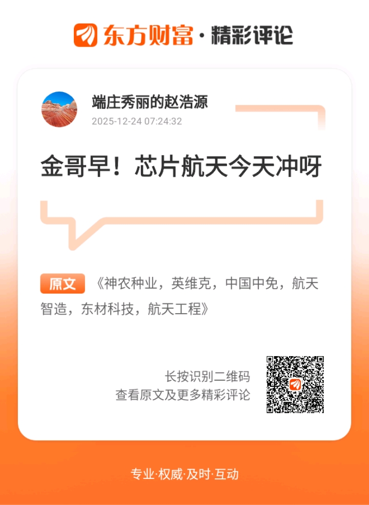 各位钓友早!今天阳光正好,心态也敞亮。 我炒股跟钓鱼一个路子,认准核心水域就沉心等机会。经过上周试钓观察,今天正式敲定跨年主线:满仓商业航天和AI硬件(芯片方向)。买点大概率不舒适,可能要承受回调,但这俩方向是我反复研判最看好的,值得蹲一波大物。说到这,突然想起去年跨年的时候,我因为犹豫没敢重仓主线,结果看着别人的“鱼获”羡慕到拍大腿。那会儿也是纠结了好几天,一会儿想追这个热点,一会儿想守那个冷门,跟钓鱼时频繁换钓位一样,最后啥也没捞着。吃一堑长一智,这次我果断定调,仓位分配也想好了:芯片方向占六层,毕竟AI硬件是当前的“黄金鱼层”,确定性更高;商业航天占四层,算是布局一个有爆发力的“潜力鱼坑”,双管齐下更稳妥。
