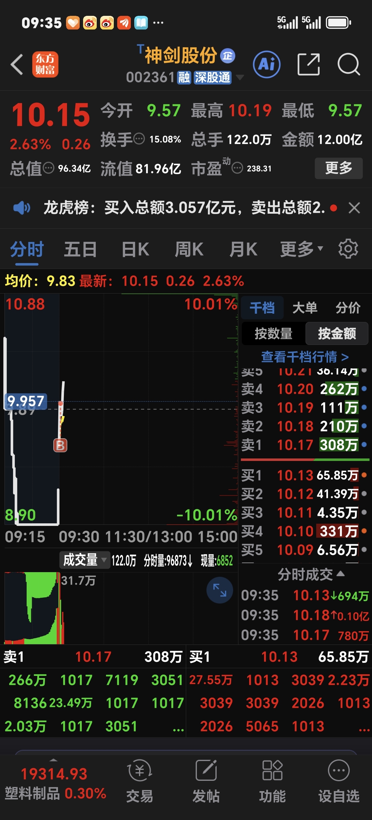 $神剑股份(SZ002361)$ 早盘转强继续B它
