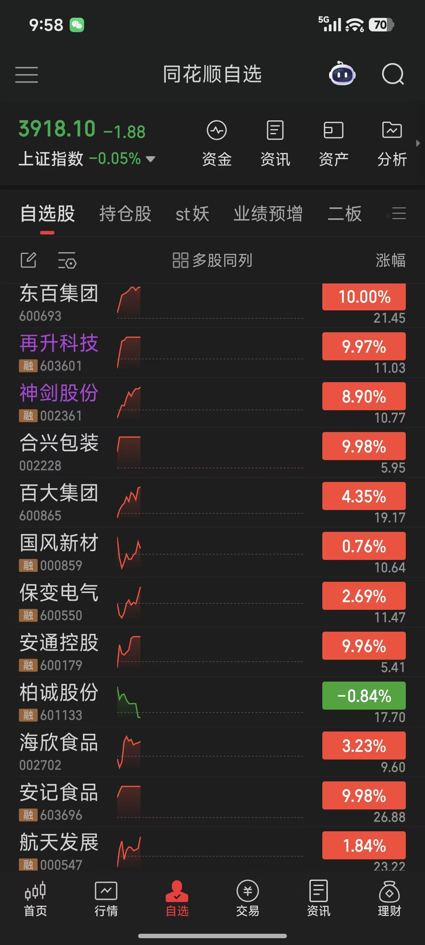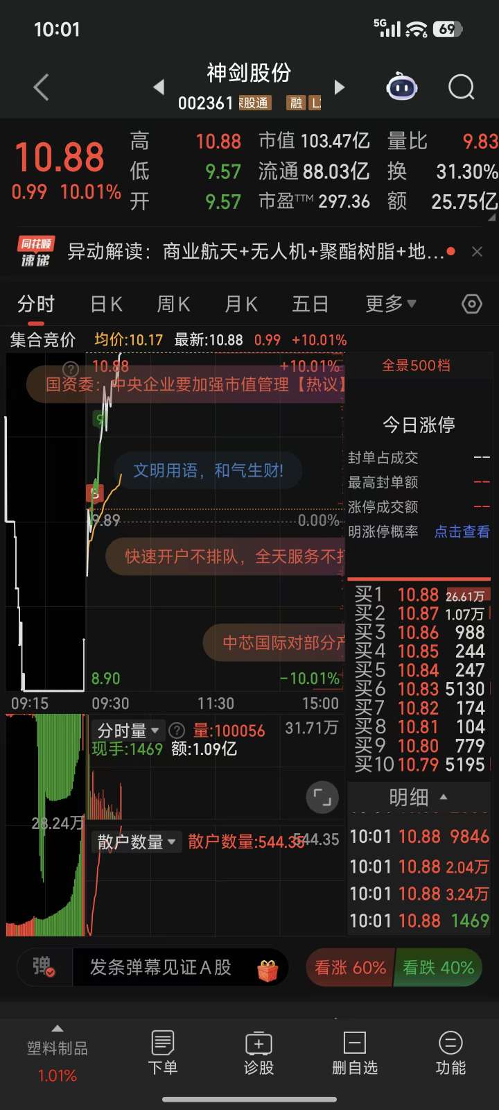 $神剑股份(SZ002361)$ 明天继续高开高走。终于能让我吃些肉了。还有再生科技这两支票重仓300万。我都已经亏了150多万了,这两支票让我回回血$再升科技(SH603601)$