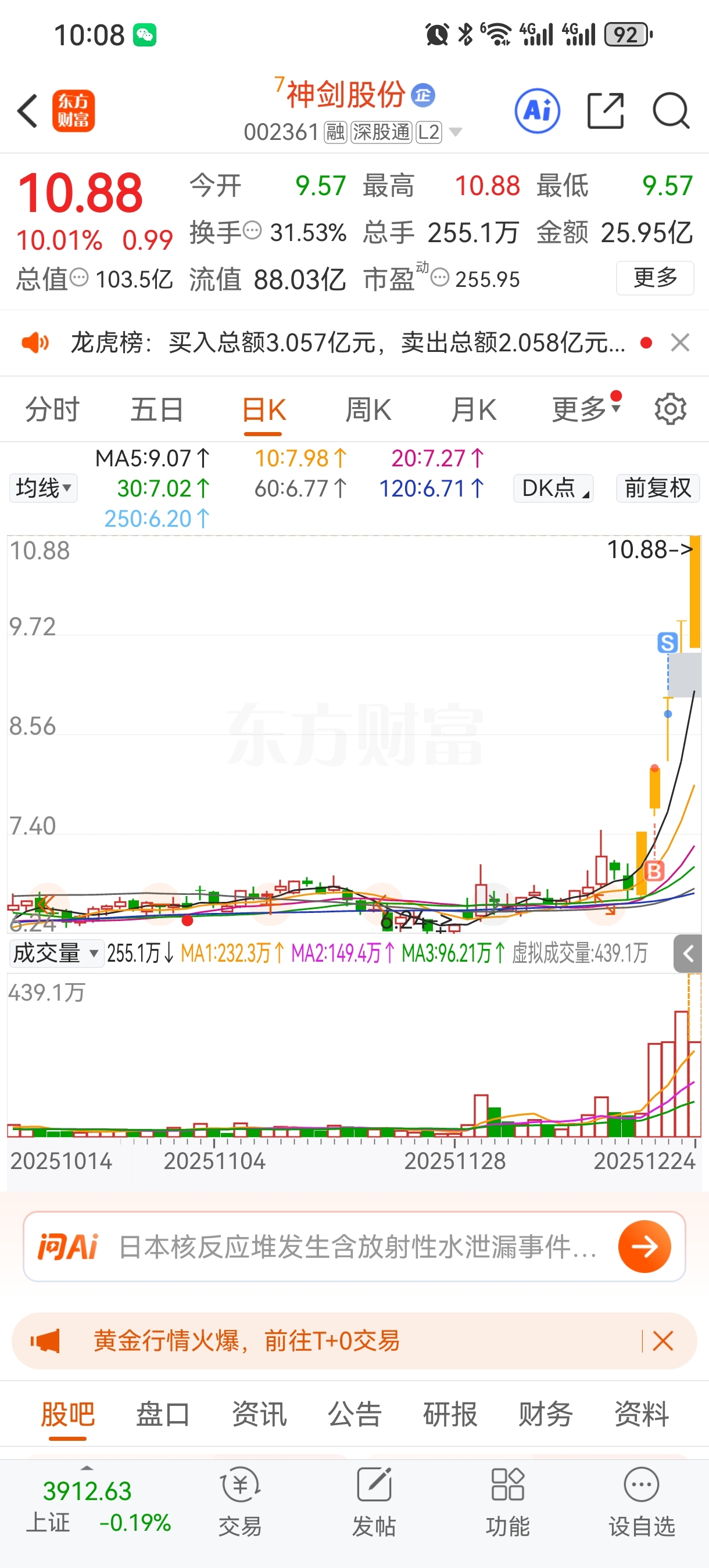$神剑股份(SZ002361)$ 我错了,格局不够大,3板被洗出来了