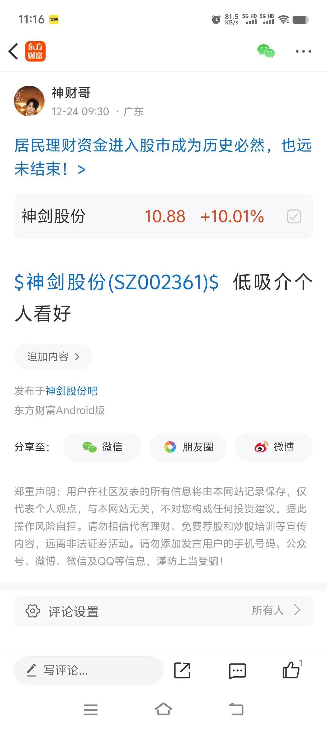 温馨提示: 1.根据《证券法》规定,禁止编造、传播虚假信息或者误导性信息,扰乱证券市场;2.用户在本社区发表的所有资料、言论等仅代表个人观点,与本网站立场无关,不对您构成任何投资建议。用户应基于自己的独立判断,自行决定证券投资并承担相应风险。《东方财富社区管理规定》