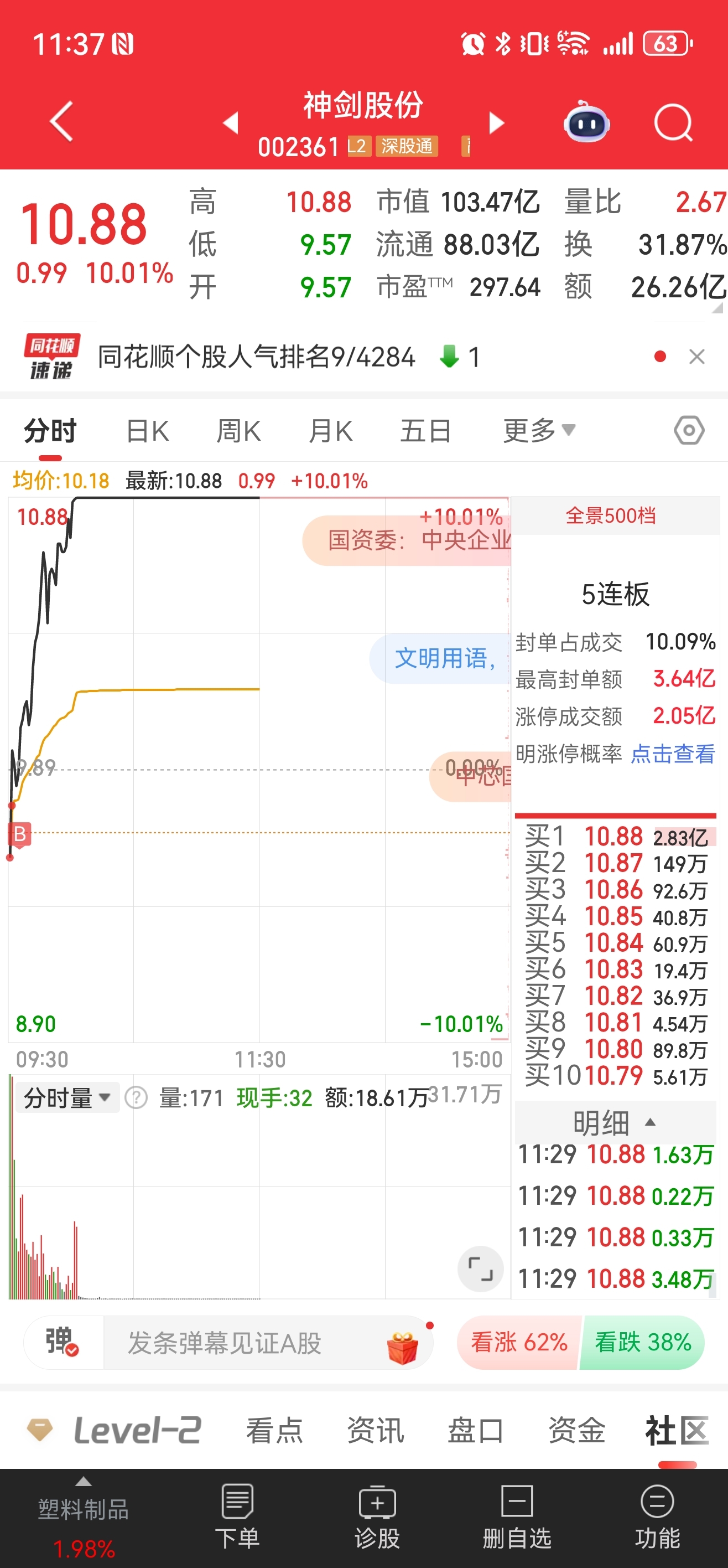 $神剑股份(SZ002361)$ 来啦来啦,虽晚但到