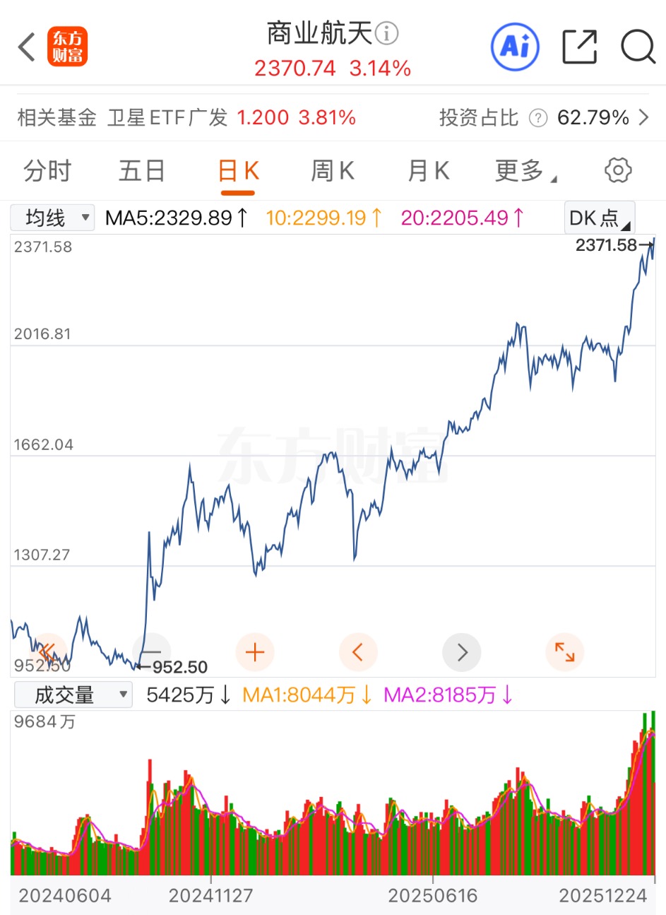 值得一提的是,东方财富商业航天概念板块指数,24个交易日板块指数区间涨幅已超20%。