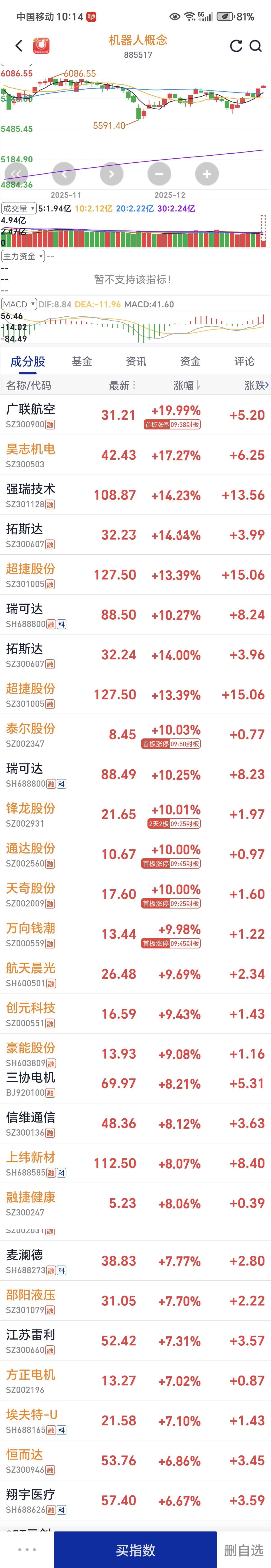 商业航天,机器人,海峡两岸,统一大市场,叠加体加分。再升科技,安记食品,博云新材