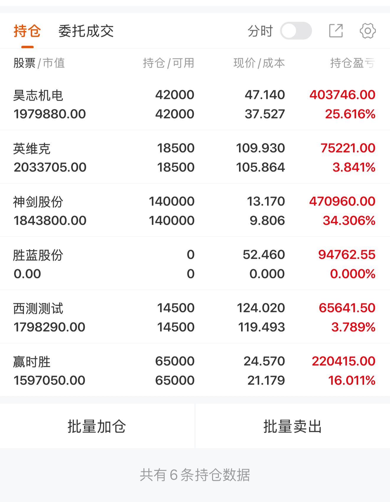 赢时胜开盘跟着指数上攻,后面大盘跳水被带下来了,英维克还在震荡调整,胜蓝股份低开选择止盈离场