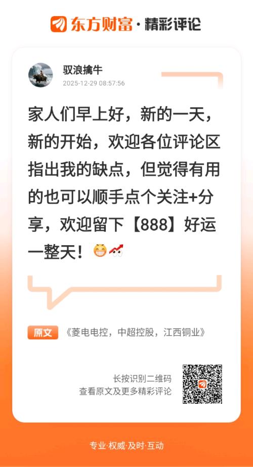 //@驭浪擒牛 :家人们早上好,新的一天,新的开始,欢迎各位评论区指出我的缺点,但觉得有用的也可以顺手点个关注+分享,欢迎留下【888】好运一整天!
