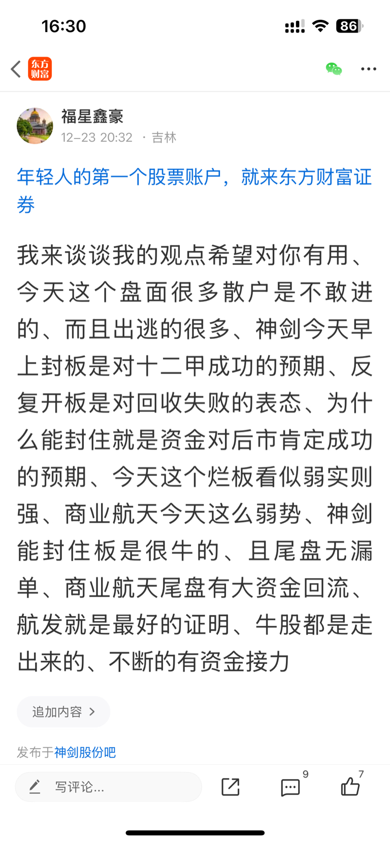 $神剑股份(SZ002361)$ 一年能遇上几只牛股、反复的发表我自己的观点、只想让更多的散户兄弟能吃点肉、我是二班入的神剑、四板晚间做的提示、心存善念福报自来