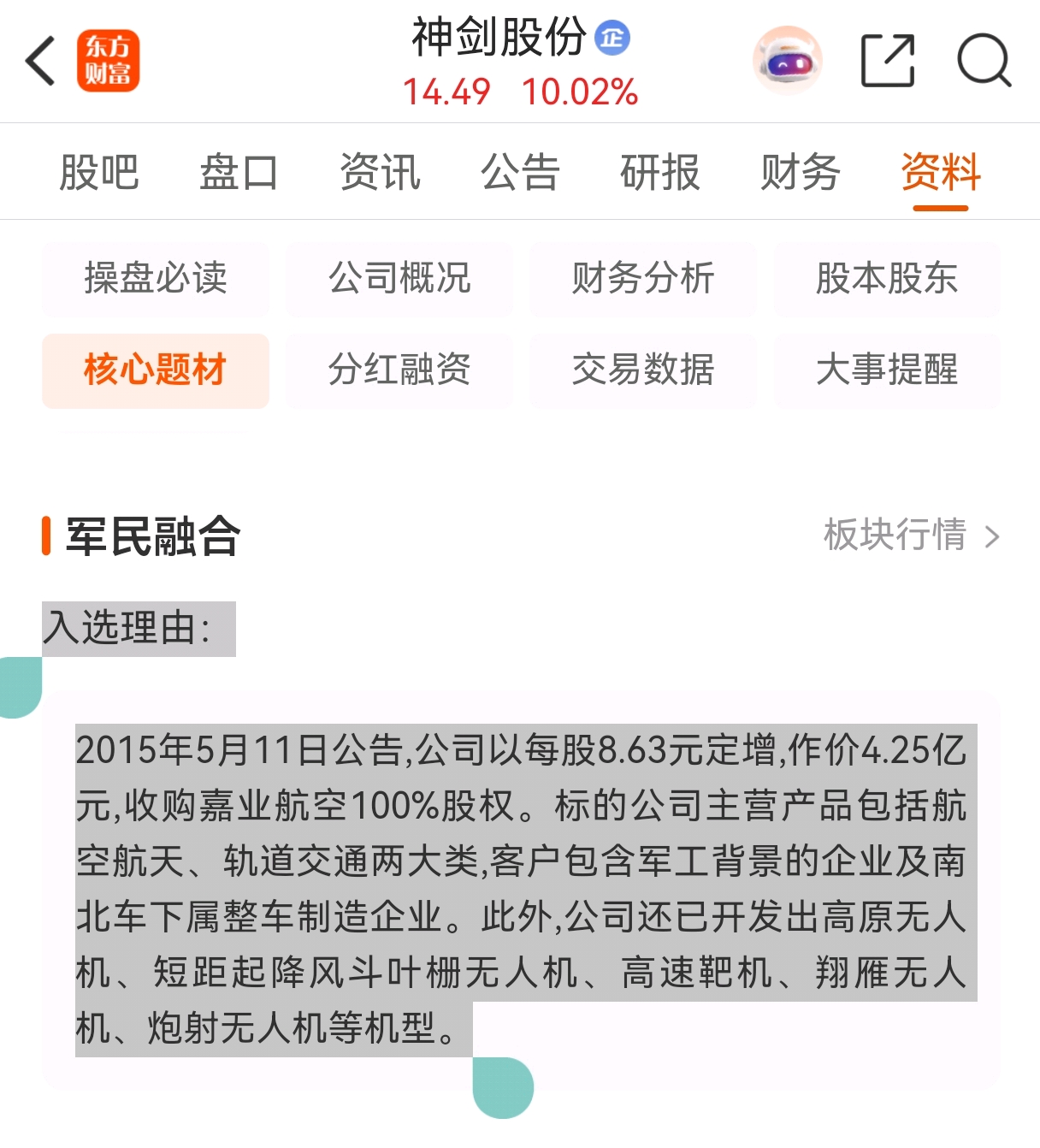 $神剑股份(SZ002361)$ 龙头哪有那么随便倒下的,底气不止航天营收的1.7个亿,还有1月份的碳纤维涨价,更有昨天无人机俯视tb!(三板上车的兄弟们,可自行下车,我战到最后)