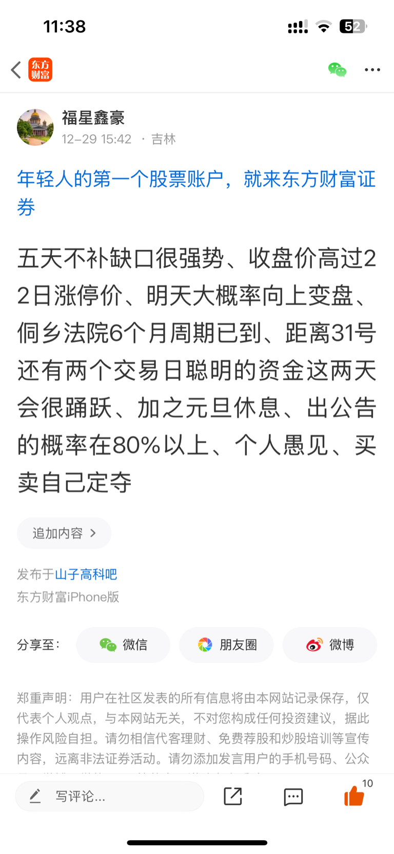 温馨提示: 1.根据《证券法》规定,禁止编造、传播虚假信息或者误导性信息,扰乱证券市场;2.用户在本社区发表的所有资料、言论等仅代表个人观点,与本网站立场无关,不对您构成任何投资建议。用户应基于自己的独立判断,自行决定证券投资并承担相应风险。《东方财富社区管理规定》