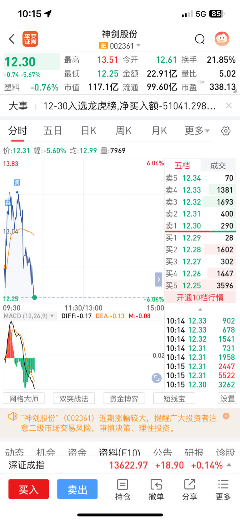 $神剑股份(SZ002361)$ 昨天跌停买进去,今天早上卖掉,开心快乐又一年,留着的朋友泪汪汪