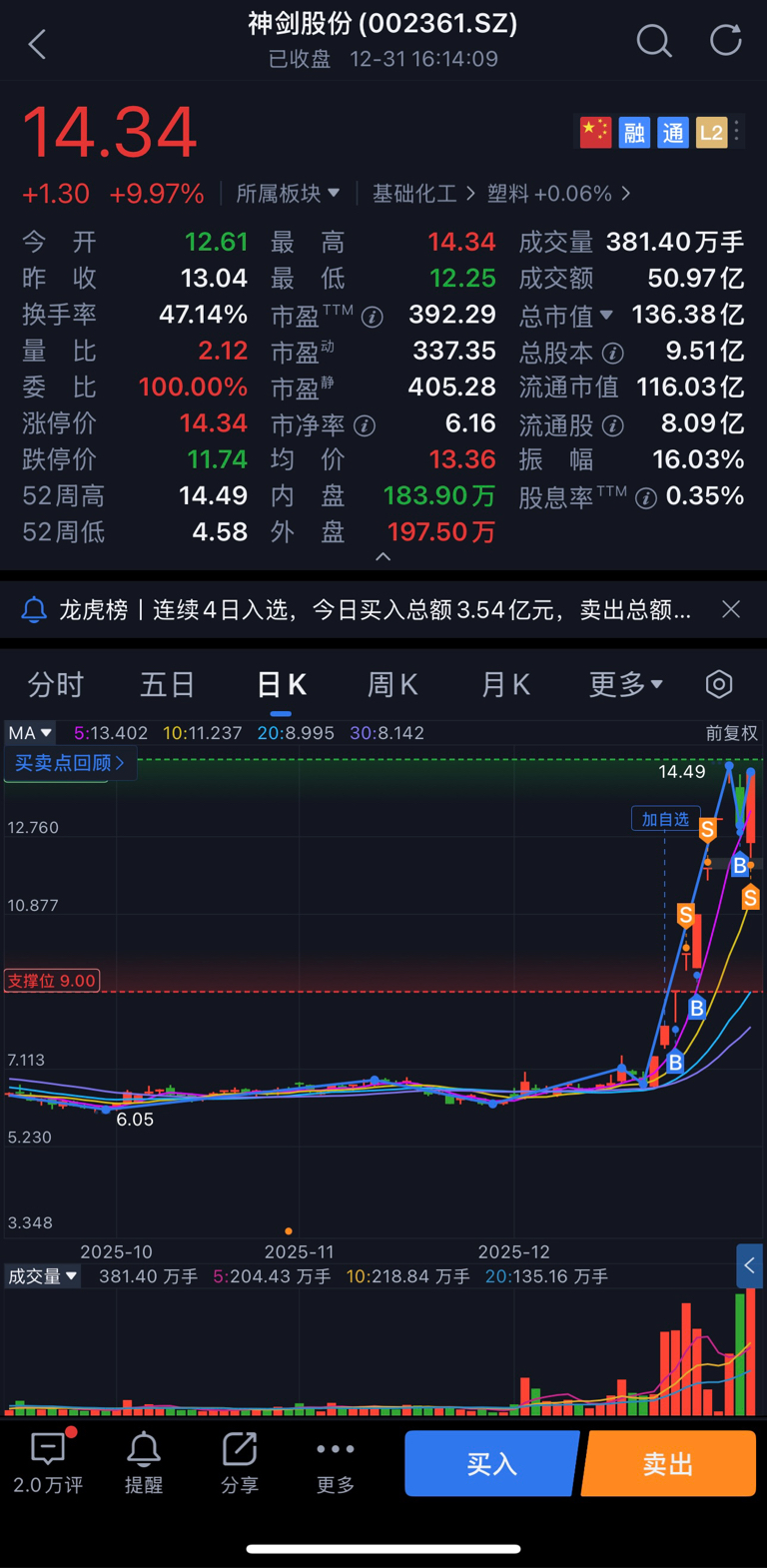 $神剑股份(SZ002361)$ 25年尾盘收官,26年再见。