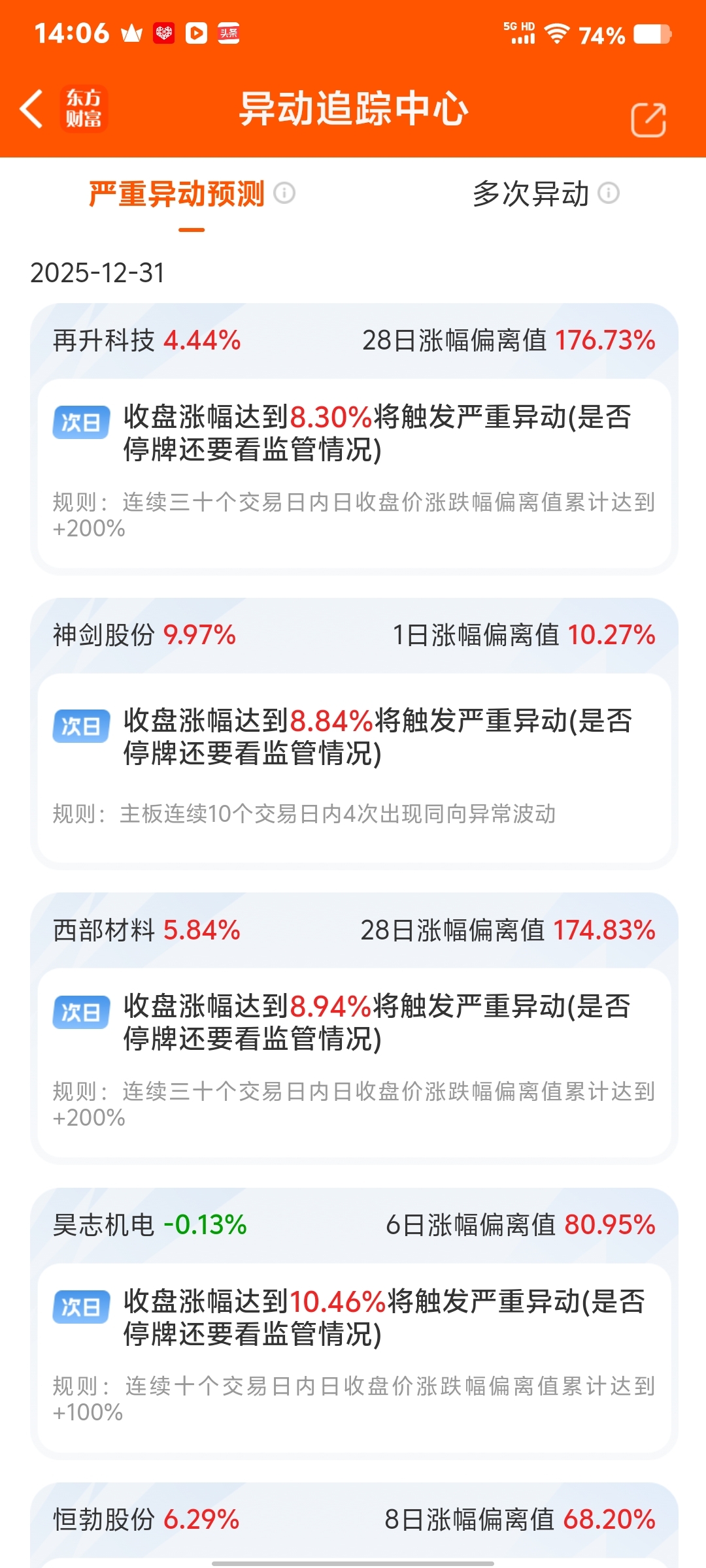 $神剑股份(SZ002361)$ 下周一上涨幅度不能大于8.84%,否则触发严重异动