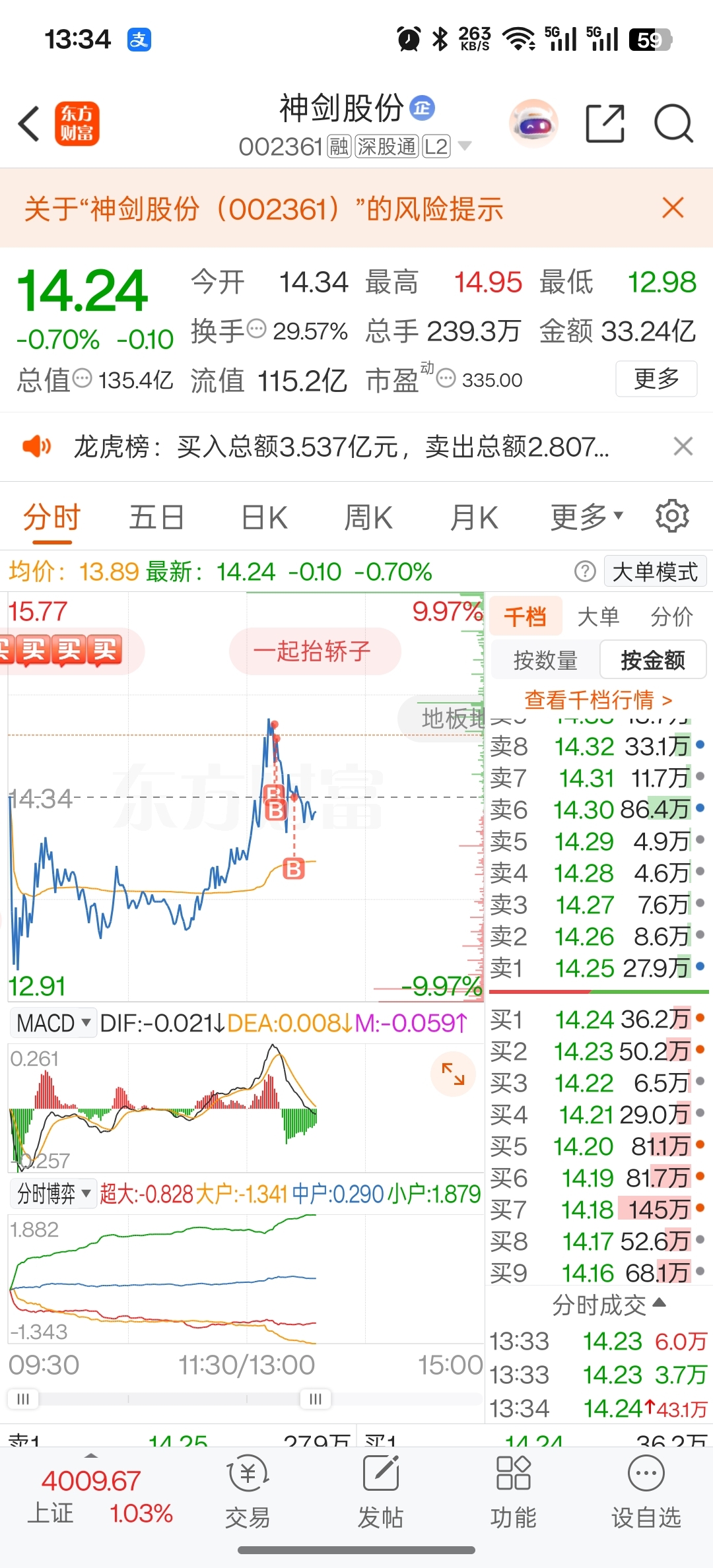 $神剑股份(SZ002361)$ 够不够最高点