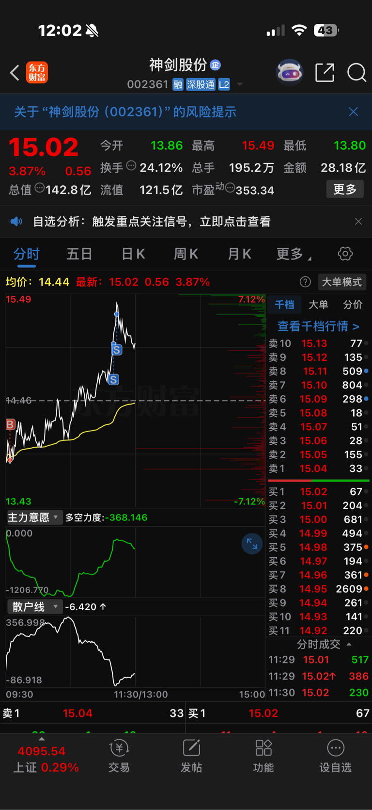 $神剑股份(SZ002361)$ 今天做了个绝世好t