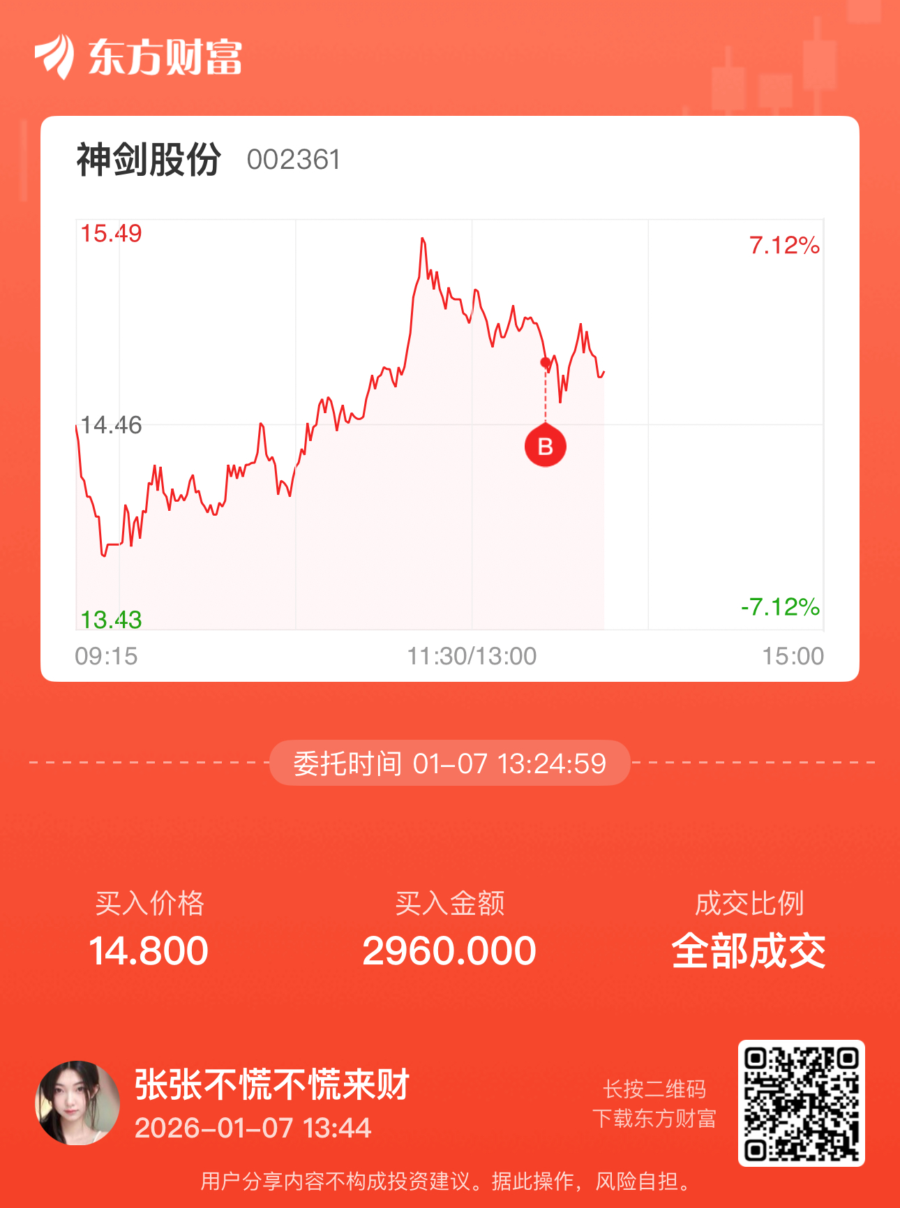 温馨提示: 1.根据《证券法》规定,禁止编造、传播虚假信息或者误导性信息,扰乱证券市场;2.用户在本社区发表的所有资料、言论等仅代表个人观点,与本网站立场无关,不对您构成任何投资建议。用户应基于自己的独立判断,自行决定证券投资并承担相应风险。《东方财富社区管理规定》