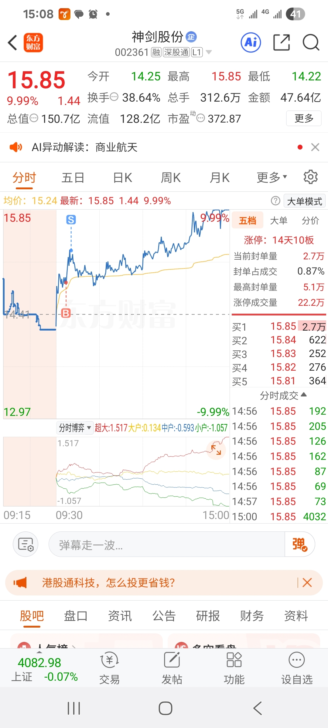 $神剑股份(SZ002361)$ 我觉得我这个t做的不后悔。万一跟昨天一样呢,对吧