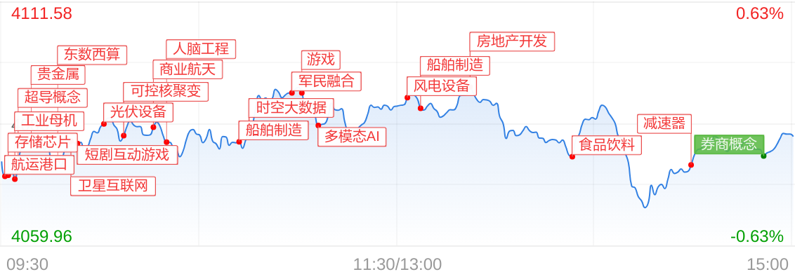 A股三大指数中创业板指领跌,截至收盘,上证指数下跌0.07%,深证成指下跌0.51%,创业板指下跌0.82%,北证50指数上涨0.81%。沪深两市成交额28003.85亿元,较上个交易日缩量538.35亿。全市场3731只个股上涨。板块题材上,卫星互联网、航母概念、商业航天板块涨幅居前,科创板做市商、券商概念、高带宽内存板块跌幅居前。大盘表现