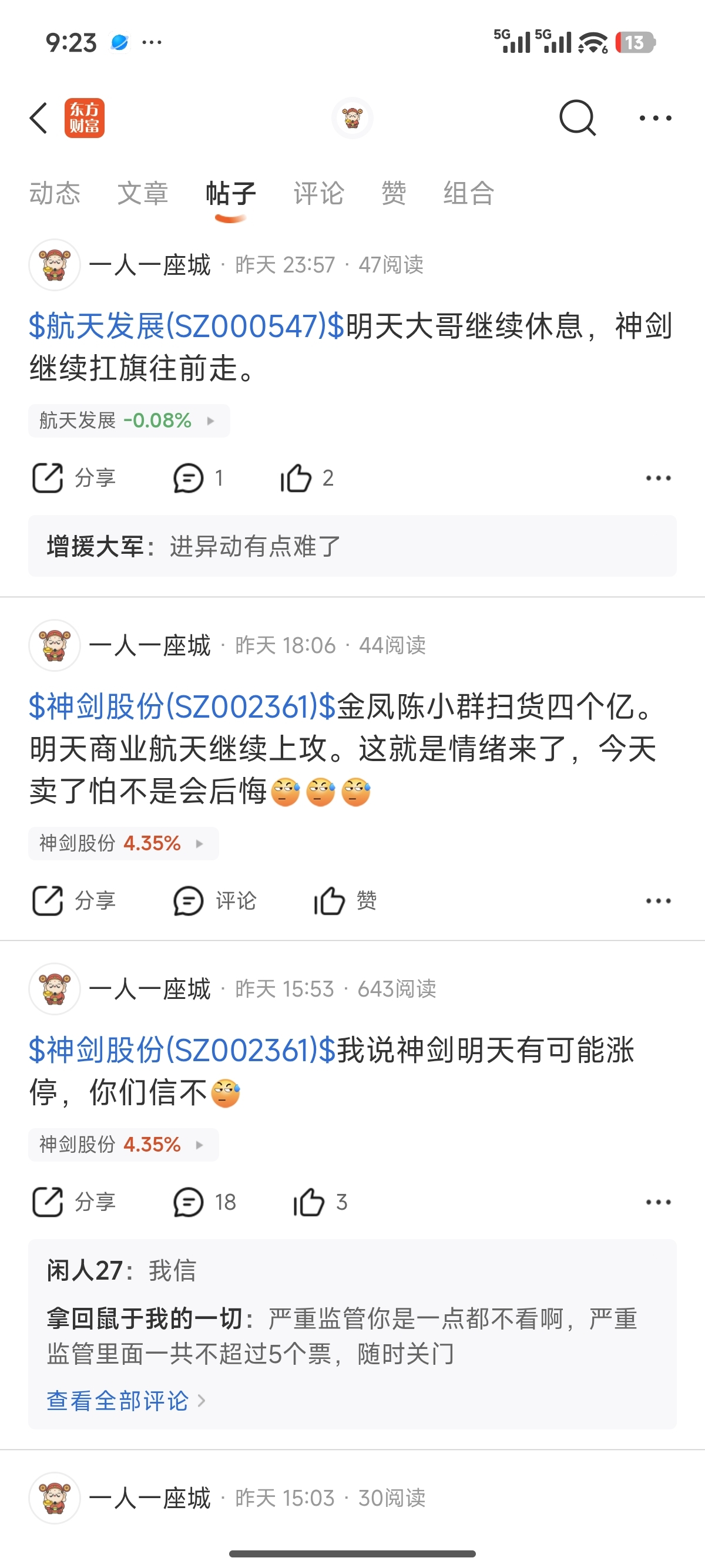 $神剑股份(SZ002361)$ 今天只有一个选择,扛旗大步往前走。商业航天龙头就是你。