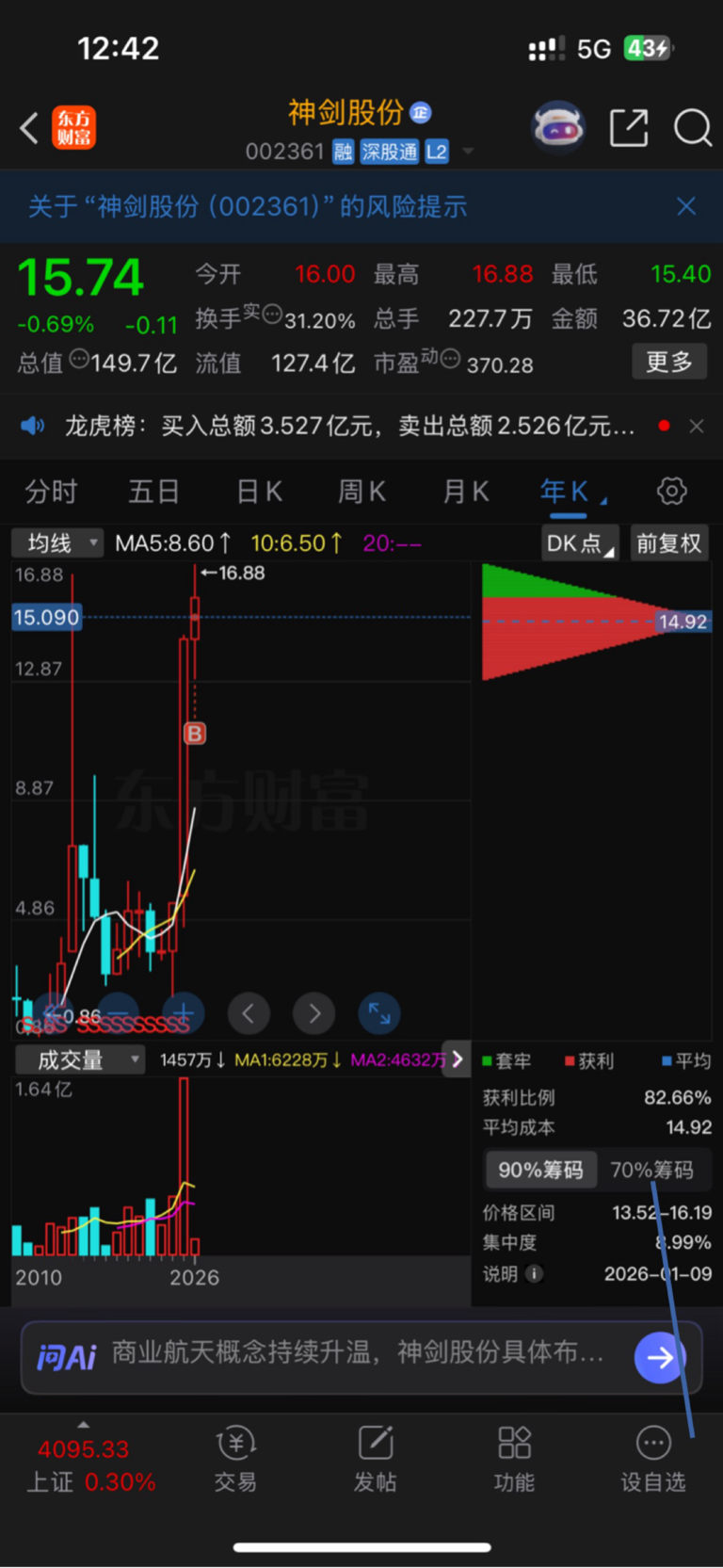 $神剑股份(SZ002361)$ 年k16.88是故意的还是不小心
