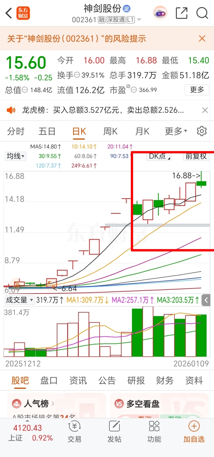 $神剑股份(SZ002361)$ 最近都是调整一天,大涨一天的走势