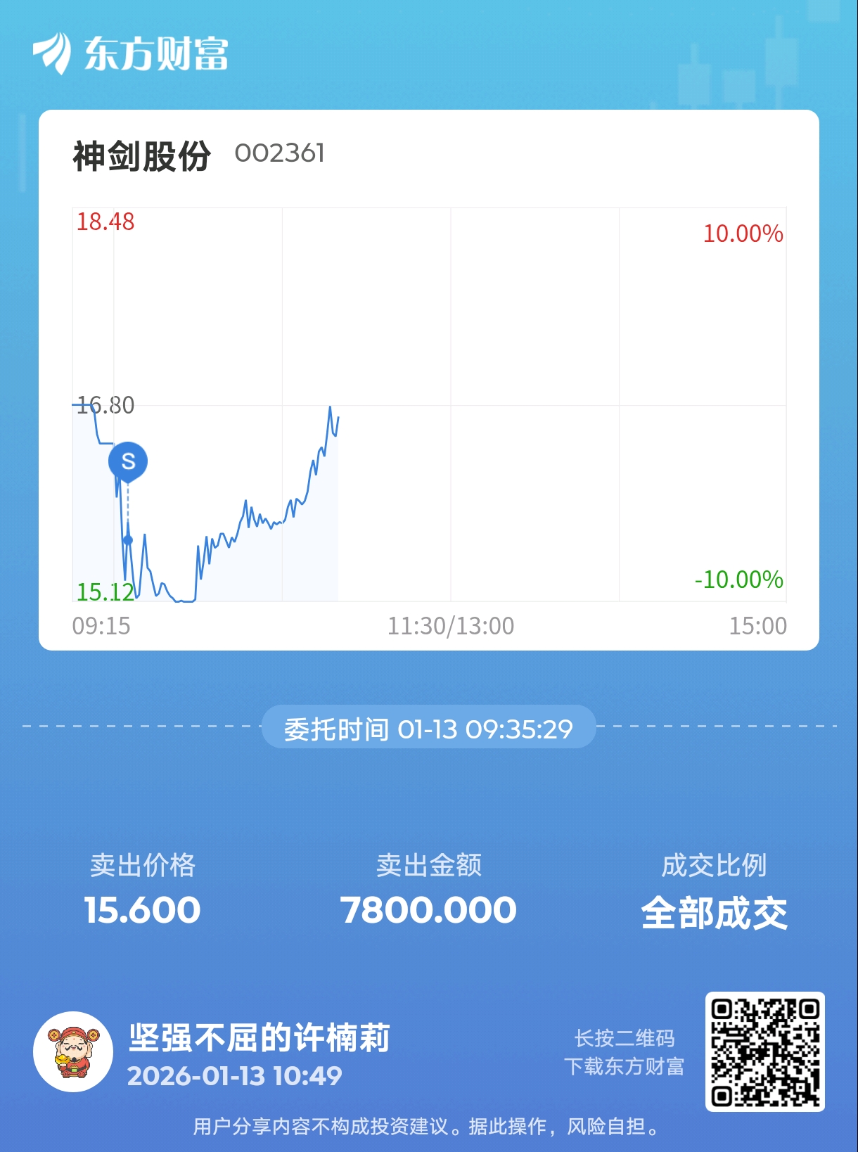 温馨提示: 1.根据《证券法》规定,禁止编造、传播虚假信息或者误导性信息,扰乱证券市场;2.用户在本社区发表的所有资料、言论等仅代表个人观点,与本网站立场无关,不对您构成任何投资建议。用户应基于自己的独立判断,自行决定证券投资并承担相应风险。《东方财富社区管理规定》