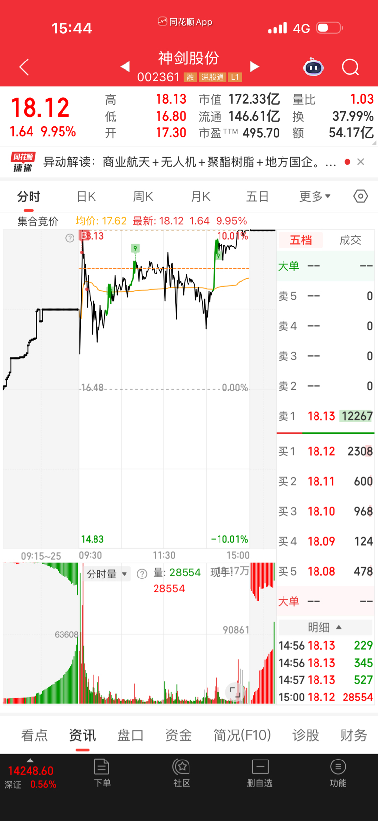 $神剑股份(SZ002361)$ 没啥好说的捡了芝麻丢了西瓜!昨天就看好神箭但是水下拉起来的怕辨识度不强买了红相(相信它是后排会补涨)结果今天早上发现神箭很强就几乎打板来的