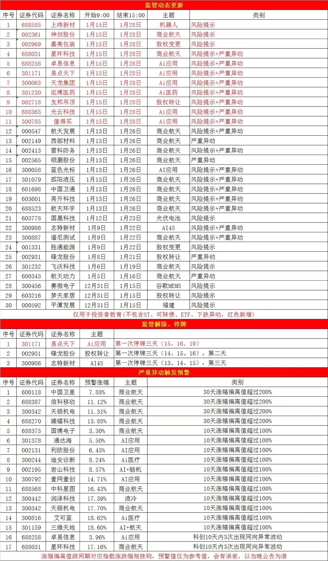 $神剑股份(SZ002361)$ 兄弟们安心睡觉吧, 我在说一遍,风险提示续上了但是无关紧要, 重点是 严重异动解除了,严重异动解除意味着大资金可以自由买卖,不会限制涨幅了。 懂吗? 明天别被骗了筹码。
