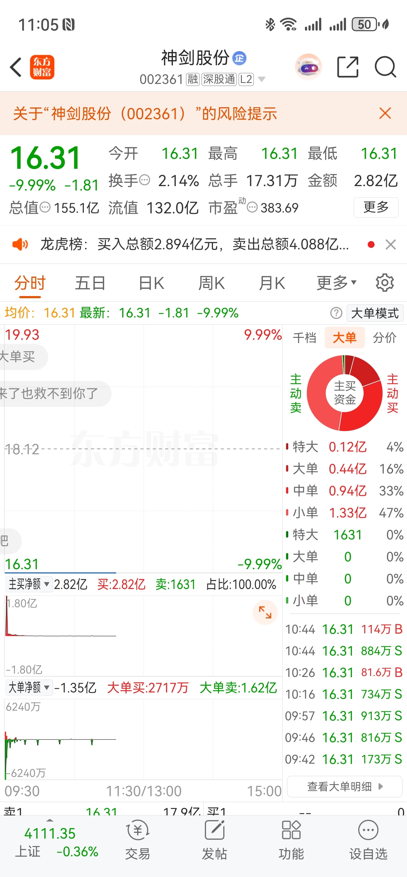 $神剑股份(SZ002361)$ 啥意思这是。没人卖么