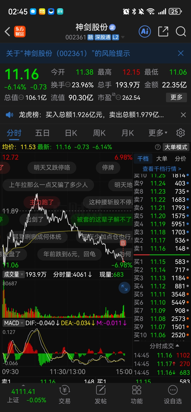 $神剑股份(SZ002361)$ 尾盘砸出买点了,我拿个先手!明天搞不好会反包!