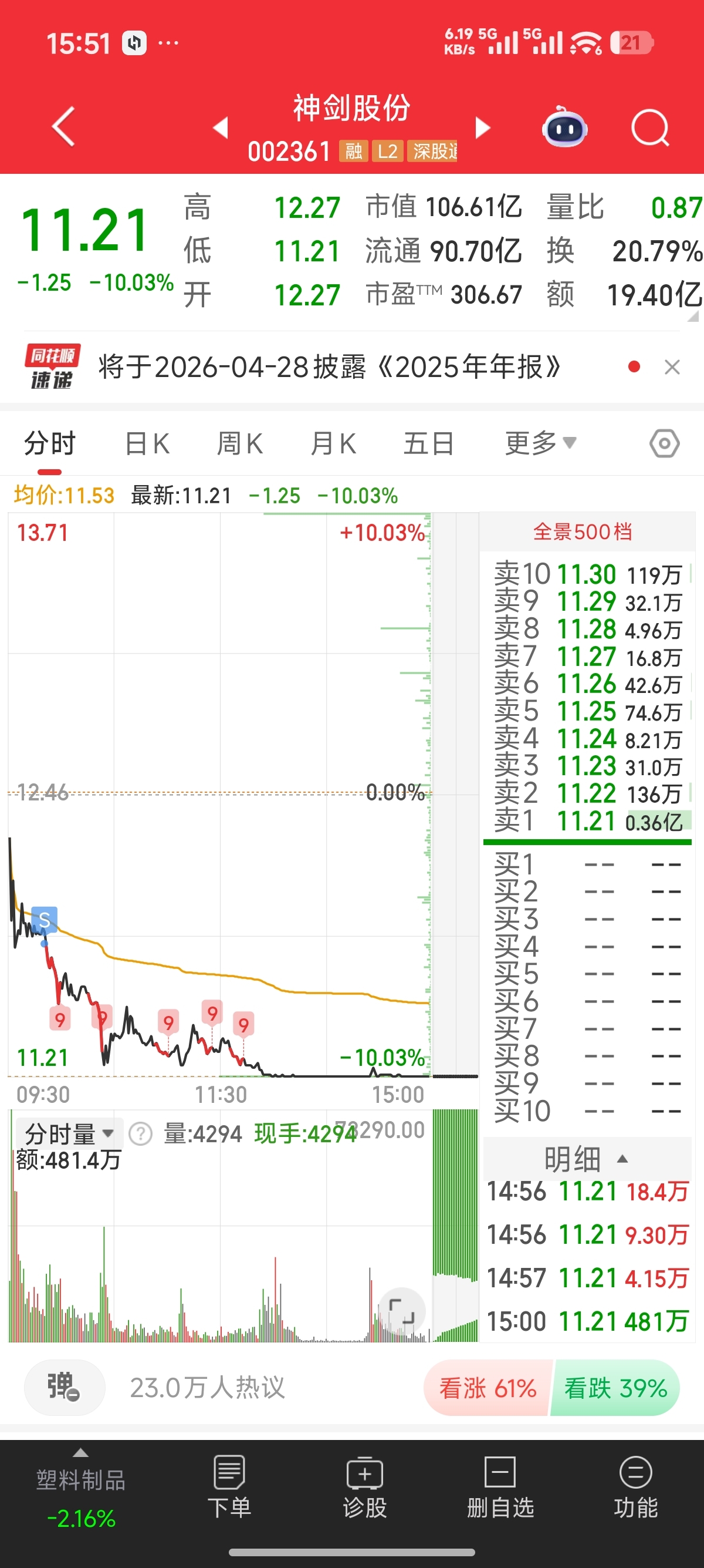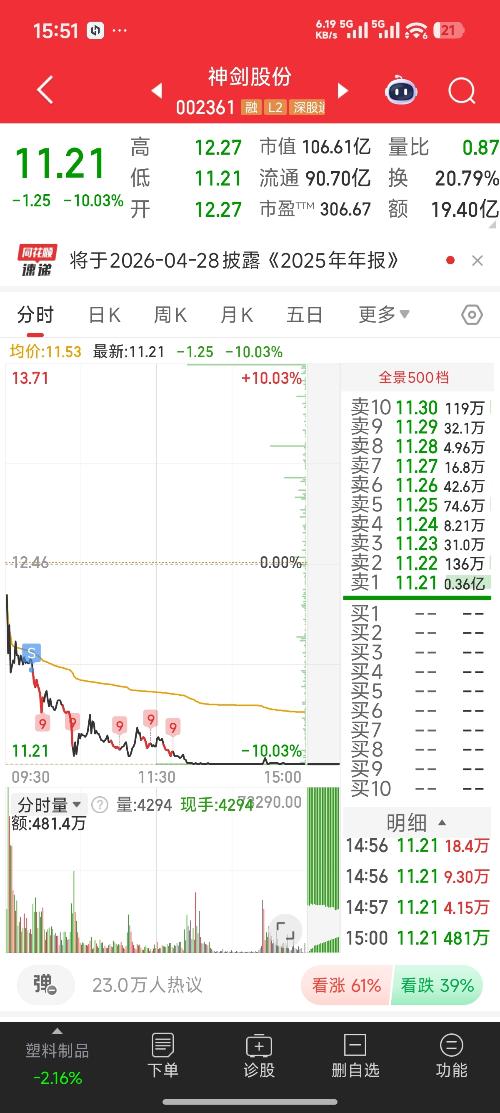 $神剑股份(SZ002361)$  都说你是杂毛,我看你最有出息。
