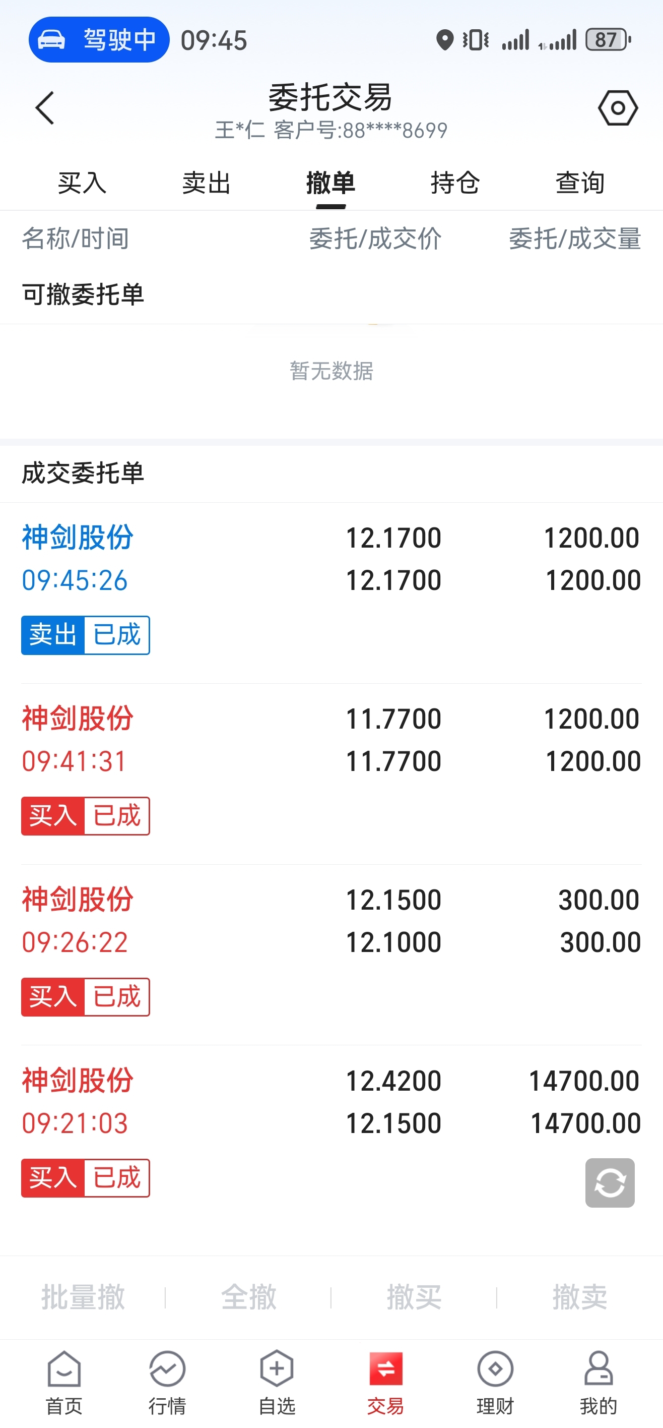 T噢!昨天判断正确、12.5出掉半仓、早盘买进!唯一遗憾是、拉升想操作、点根烟的时间、回落了!希望每一次操作都有空间!!低开、高走就赚大喽!太难了~11.5成本T成了11.3!累