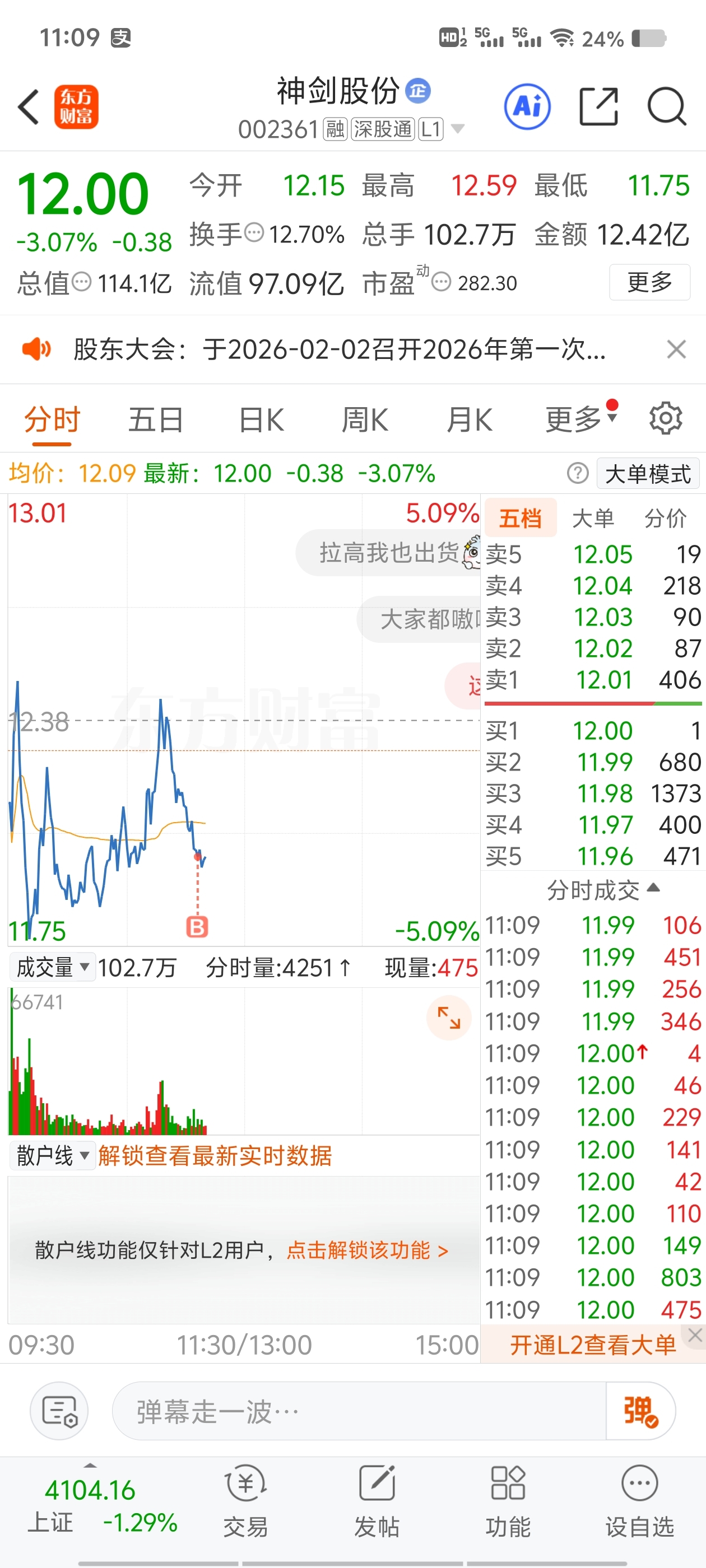 $神剑股份(SZ002361)$ 12上车,祝我好运。铁铁们