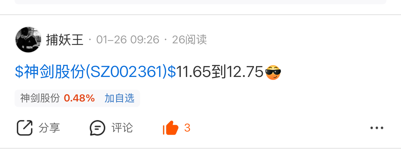 $神剑股份(SZ002361)$ 今天各位都做套没有,第一波下跌5个点来不及卖的第二波冲到12.4就要卖,3个点附近11.9左右接回来