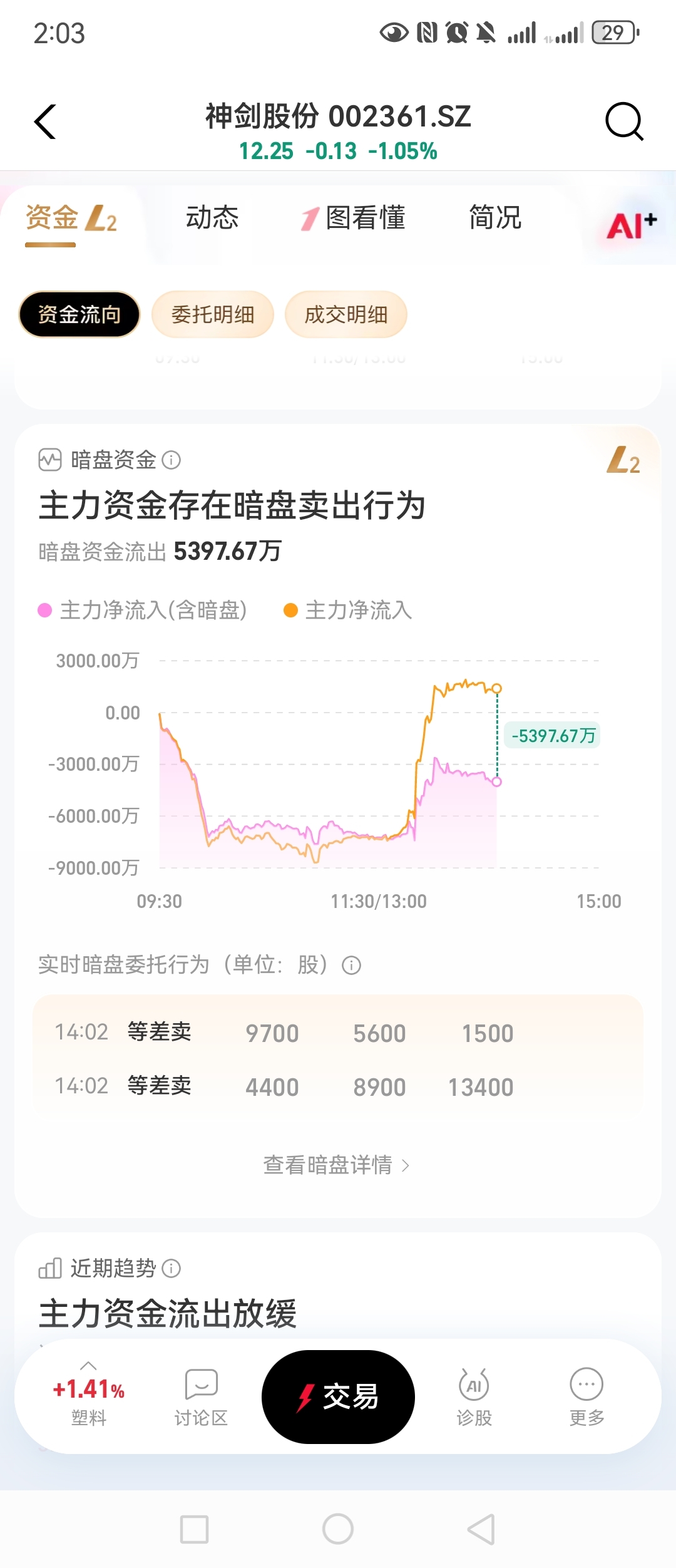 $神剑股份(SZ002361)$ 暗盘疯狂出货了,你们还幻想啥