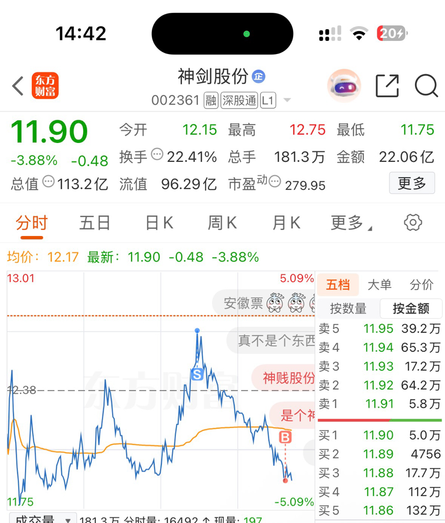 $神剑股份(SZ002361)$ 15.7的本做到了12.79