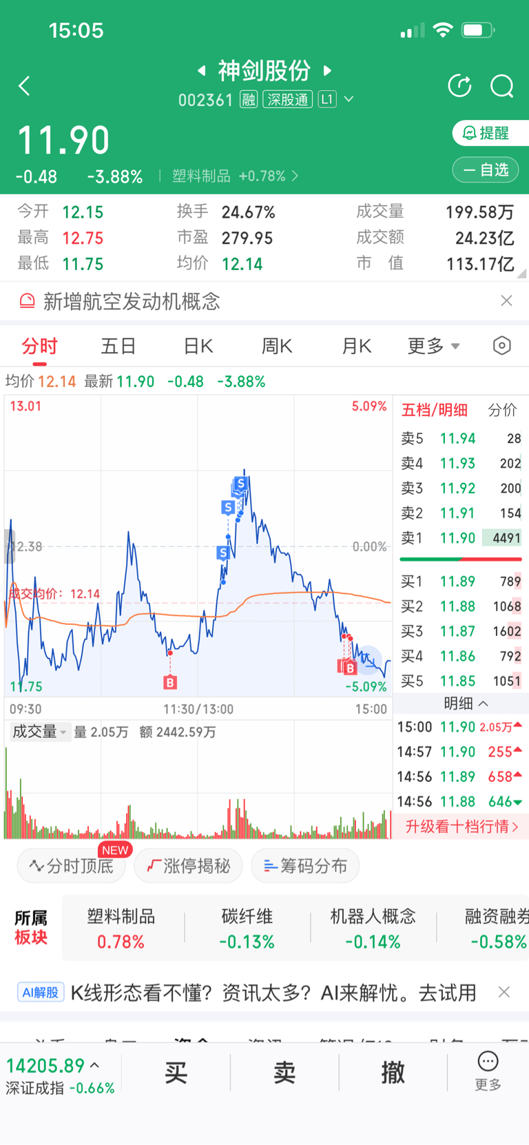 $神剑股份(SZ002361)$ 以为尾盘再抽一下。草看来我想多了!打手