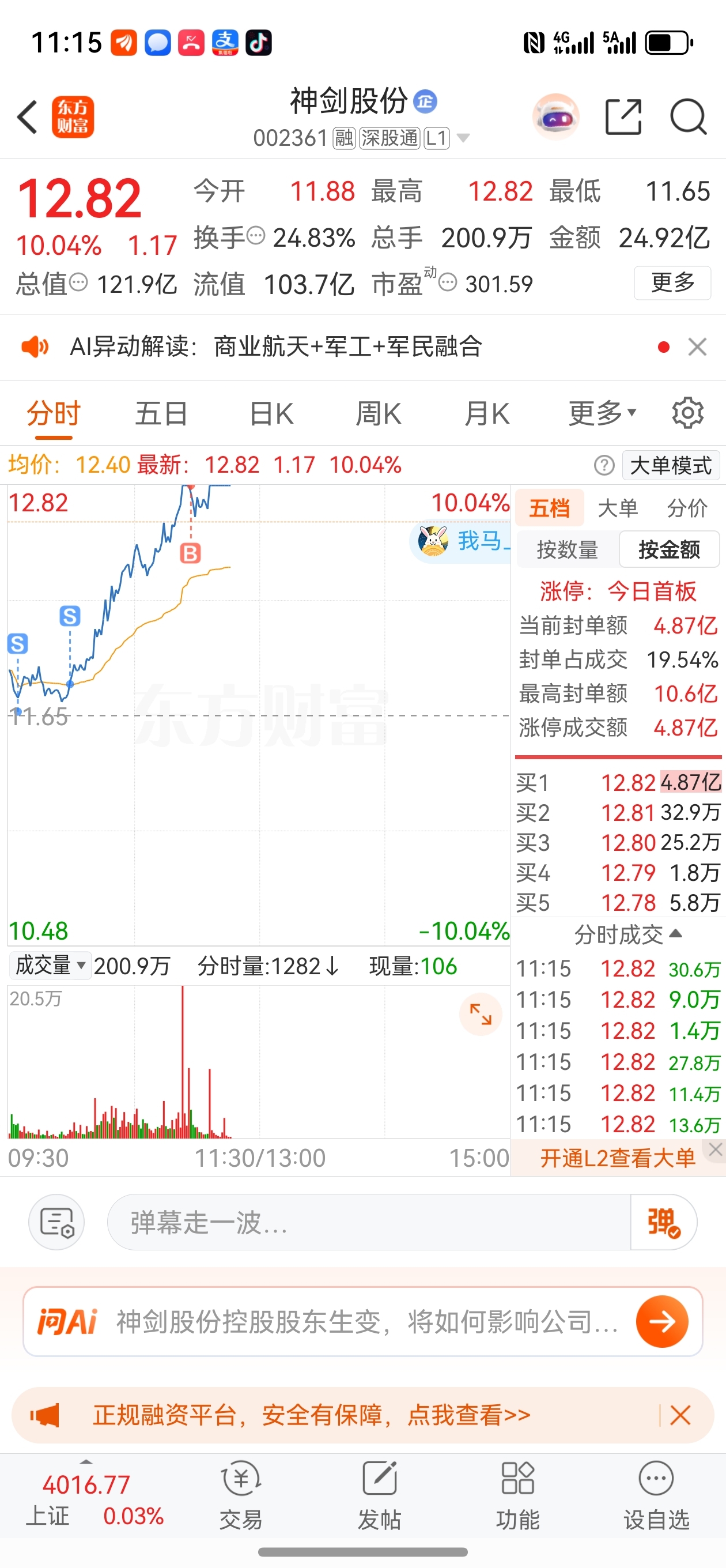$神剑股份(SZ002361)$ 每天都没做t就今天看着太弱了,结果就这样了,打扮进的哥明天别埋我,连板吧